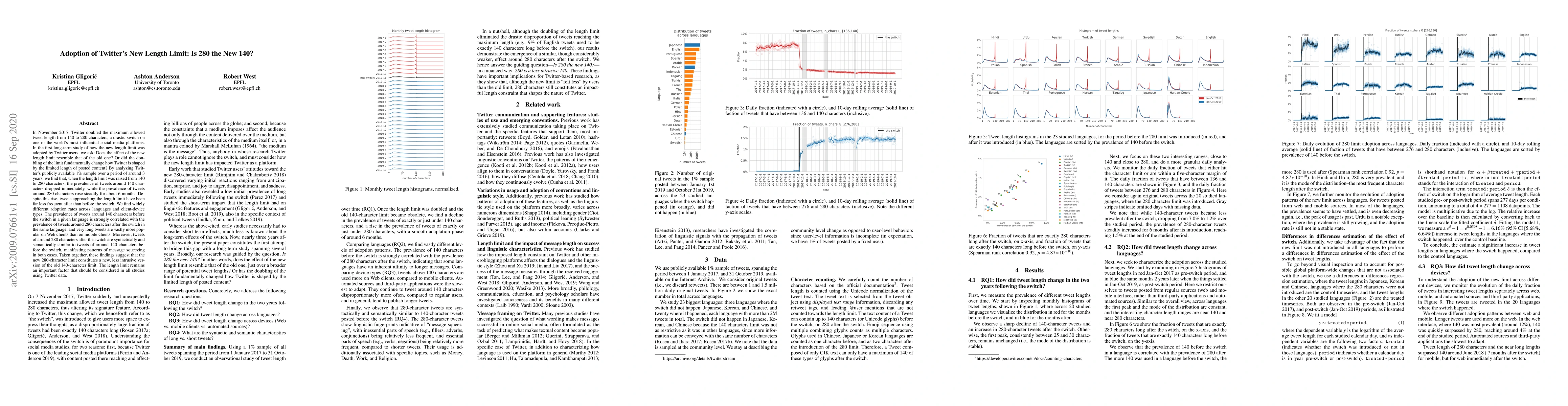 A 3-year study found that Twitter users adapted to the new 280-character limit by reducing long tweets and increasing short ones, but with varying adoption rates across languages and devices.