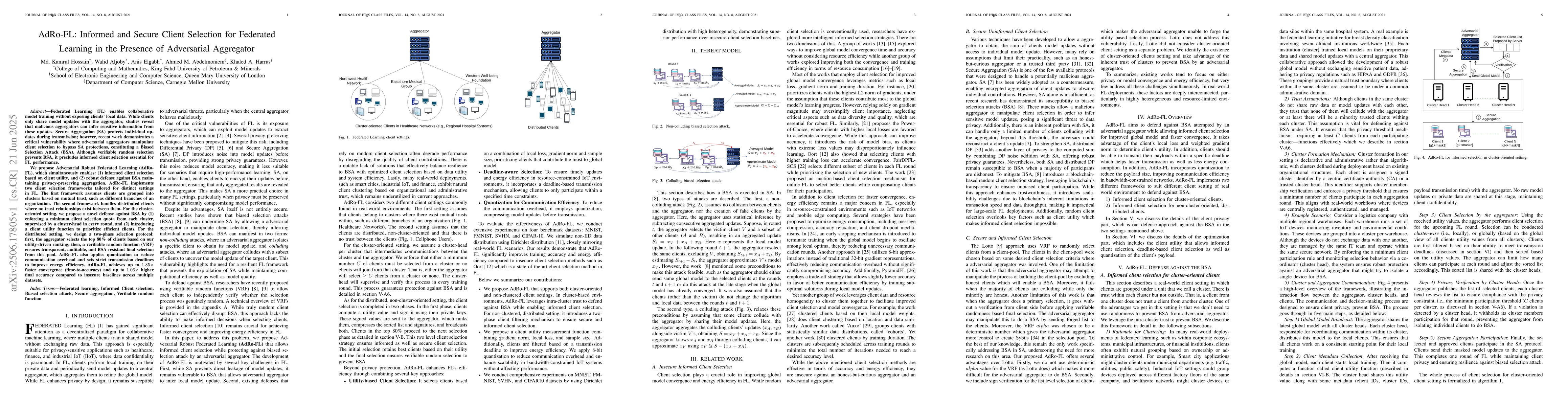 Federated Learning (FL) enables collaborative learning without exposing clients' data. While clients only share model updates with the aggregator, studies reveal that aggregators can infer sensitive information from these updates. Secure Aggregation (SA) protects individual updates during transmission; however, recent work demonstrates a critical vulnerability where adversarial aggregators manipulate client selection to bypass SA protections, constituting a Biased Selection Attack (BSA). Although verifiable random selection prevents BSA, it precludes informed client selection essential for FL performance. We propose Adversarial Robust Federated Learning (AdRo-FL), which simultaneously enables: informed client selection based on client utility, and robust defense against BSA maintaining privacy-preserving aggregation. AdRo-FL implements two client selection frameworks tailored for distinct settings. The first framework assumes clients are grouped into clusters based on mutual trust, such as different branches of an organization. The second framework handles distributed clients where no trust relationships exist between them. For the cluster-oriented setting, we propose a novel defense against BSA by (1) enforcing a minimum client selection quota from each cluster, supervised by a cluster-head in every round, and (2) introducing a client utility function to prioritize efficient clients. For the distributed setting, we design a two-phase selection protocol: first, the aggregator selects the top clients based on our utility-driven ranking; then, a verifiable random function (VRF) ensures a BSA-resistant final selection. AdRo-FL also applies quantization to reduce communication overhead and sets strict transmission deadlines to improve energy efficiency. AdRo-FL achieves up to $1.85\times$ faster time-to-accuracy and up to $1.06\times$ higher final accuracy compared to insecure baselines.