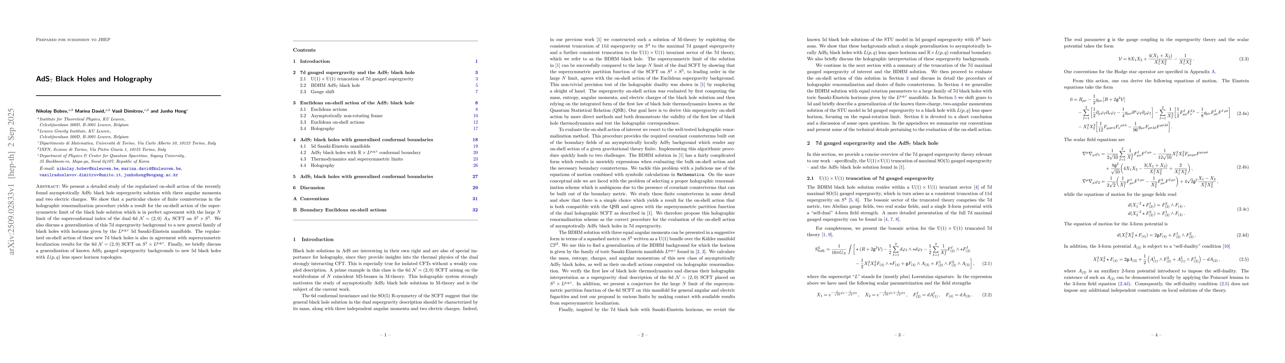 We present a detailed study of the regularized on-shell action of the recently found asymptotically AdS$_7$ black hole supergravity solution with three angular momenta and two electric charges. We show that a particular choice of finite counterterms in the holographic renormalization procedure yields a result for the on-shell action of the supersymmetric limit of the black hole solution which is in perfect agreement with the large $N$ limit of the superconformal index of the dual 6d $\mathcal{N}=(2,0)$ $A_{N}$ SCFT on $S^1\times S^5$. We also discuss a generalization of this 7d supergravity background to a new general family of black holes with horizons given by the $L^{p,q,r}$ 5d Sasaki-Einstein manifolds. The regularized on-shell action of these new 7d black holes is also in agreement with supersymmetric localization results for the 6d $\mathcal{N}=(2,0)$ SCFT on $S^1\times L^{p,q,r}$. Finally, we briefly discuss a generalization of known AdS$_5$ gauged supergravity backgrounds to new 5d black holes with $L(p,q)$ lens space horizon topologies.