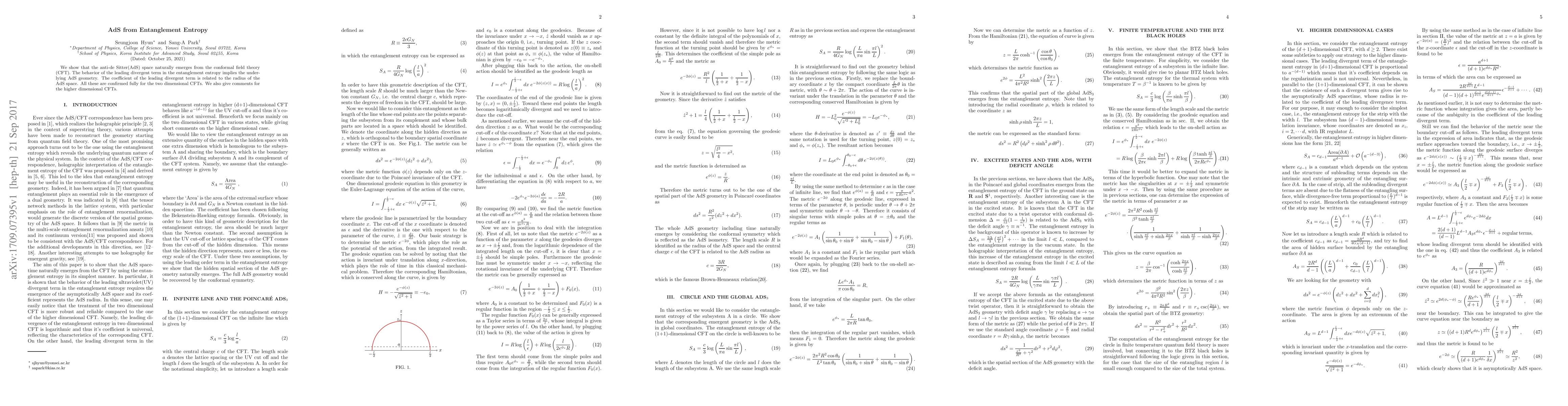 Researchers show that anti-de Sitter space naturally emerges from conformal field theory through entanglement entropy calculations, with the AdS geometry confirmed for 2D CFTs.