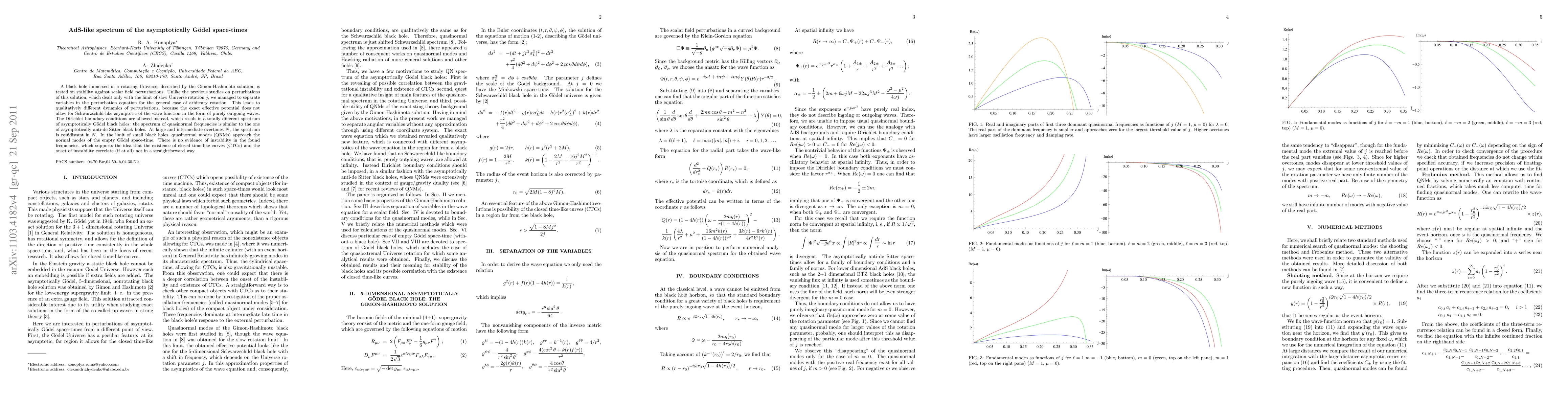 A black hole immersed in a rotating Universe, described by the Gimon-Hashimoto solution, is tested on stability against scalar field perturbations. Unlike the previous studies on perturbations of this solution, which dealt only with the limit of slow Universe rotation j, we managed to separate variables in the perturbation equation for the general case of arbitrary rotation. This leads to qualitatively different dynamics of perturbations, because the exact effective potential does not allow for Schwarzschild-like asymptotic of the wave function in the form of purely outgoing waves. The Dirichlet boundary conditions are allowed instead, which result in a totally different spectrum of asymptotically G\"odel black holes: the spectrum of quasinormal frequencies is similar to the one of asymptotically anti-de Sitter black holes. At large and intermediate overtones N, the spectrum is equidistant in N. In the limit of small black holes, quasinormal modes (QNMs) approach the normal modes of the empty G\"odel space-time. There is no evidence of instability in the found frequencies, which supports the idea that the existence of closed time-like curves (CTCs) and the onset of instability correlate (if at all) not in a straightforward way.