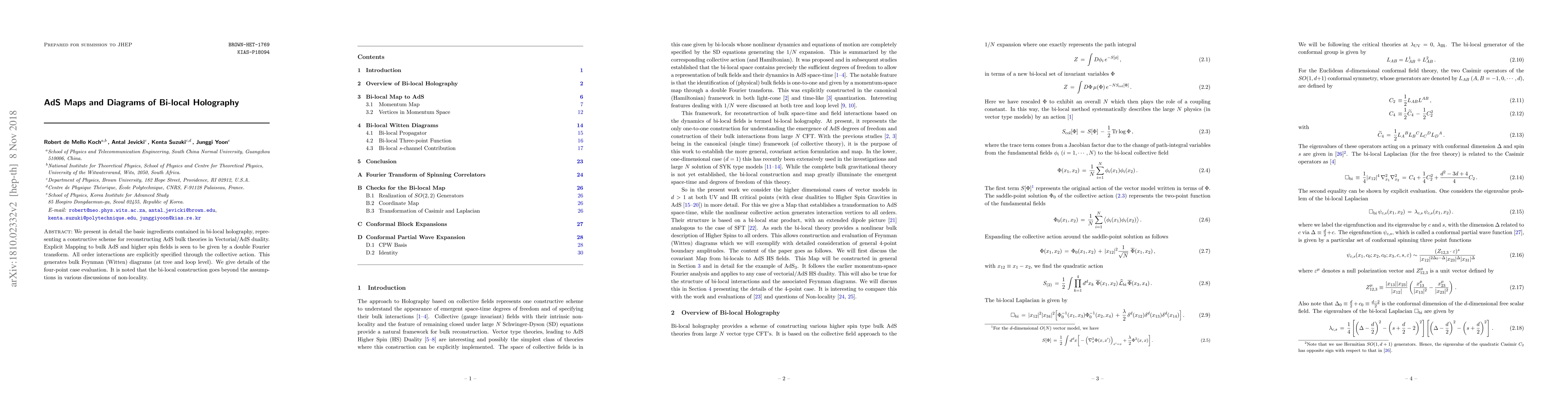 We present in detail the basic ingredients contained in bi-local holography, representing a constructive scheme for reconstructing AdS bulk theories in Vectorial/AdS duality. Explicit Mapping to bulk AdS and higher spin fields is seen to be given by a double Fourier transform. All order interactions are explicitly specified through the collective action. This generates bulk Feynman (Witten) diagrams (at tree and loop level). We give details of the four-point case evaluation. It is noted that the bi-local construction goes beyond the assumptions in various discussions of non-locality.