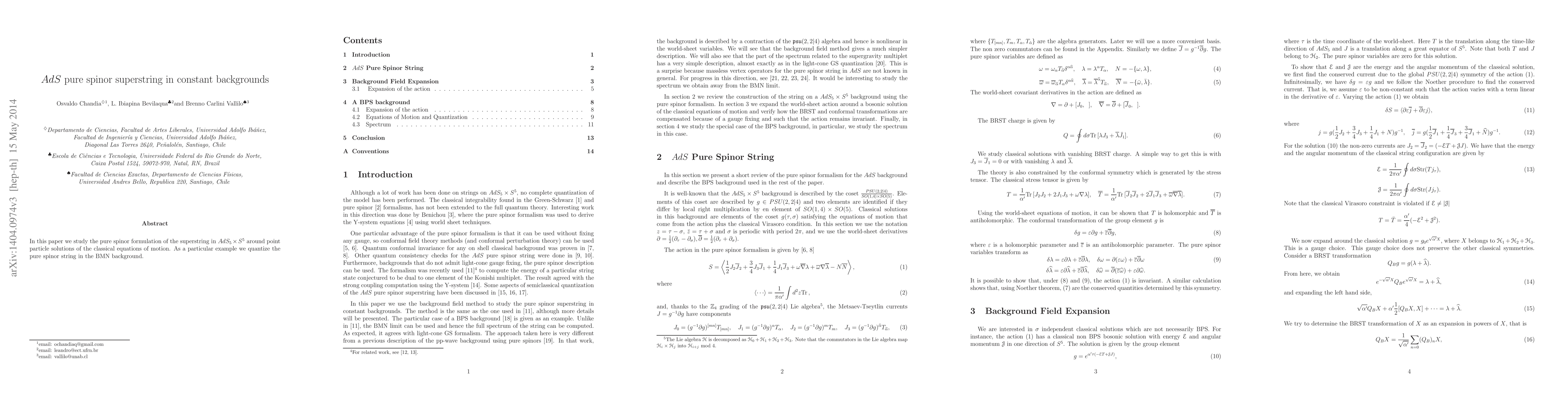 This paper investigates the pure spinor formulation of the superstring in $AdS_5\times S^5$, focusing on point particle solutions. It quantizes the pure spinor string specifically in the BMN background.