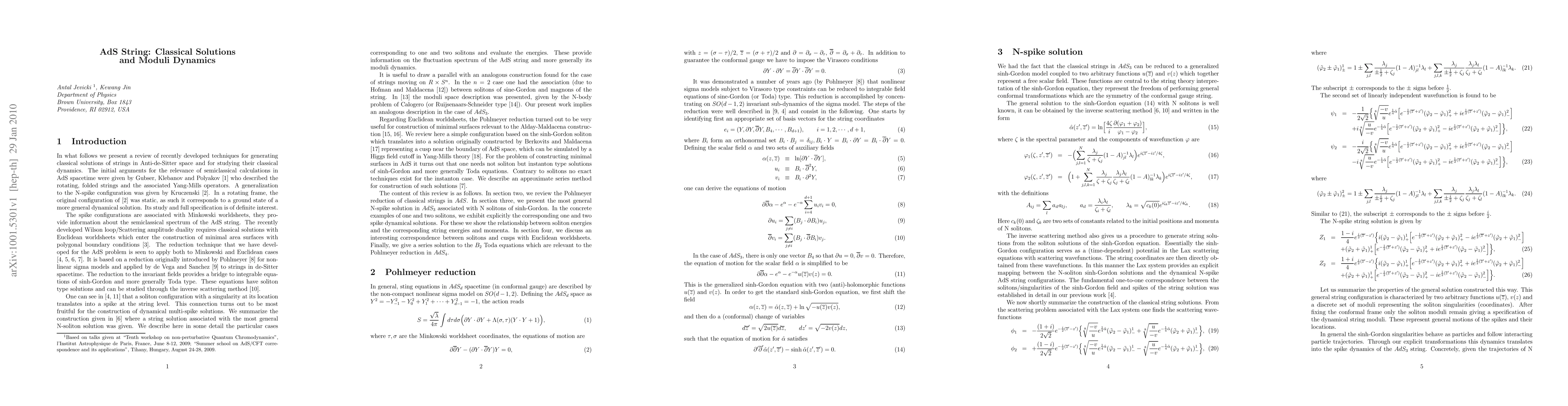 We review some recent work and techniques for constructing dynamical string solutions in AdS spacetime. These solutions generalize the folded string and multi-spike solutions of GKP and Kruczenski. The methods developed for constructing these dynamical solutions are based on Pohlmeyer reduction to integrable sinh-Gordon type equations. The integrability of the equations is seen as the crucial tool for reconstruction of the string configurations. We discuss the physical meaning of these dynamical spike solutions and the question of their moduli space.