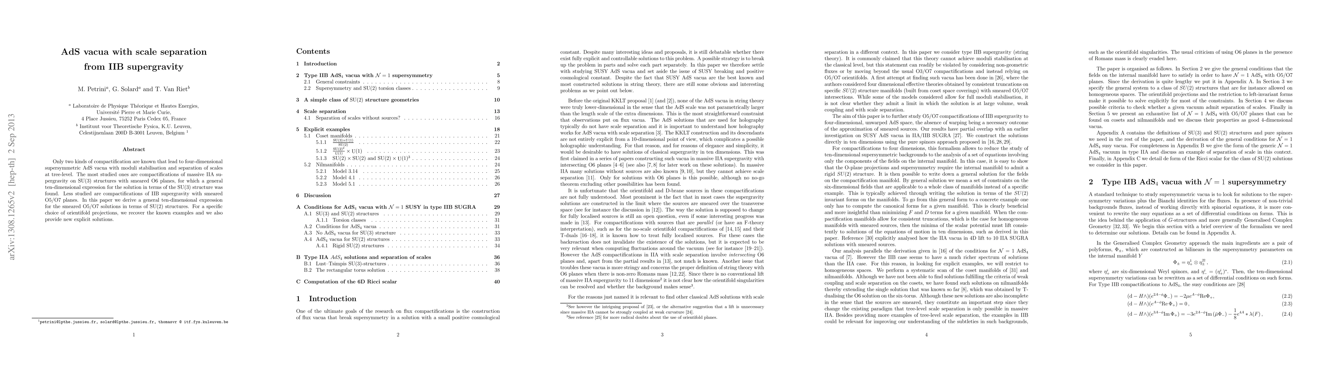 Only two kinds of compactification are known that lead to four-dimensional supersymmetric AdS vacua with moduli stabilisation and separation of scales at tree-level. The most studied ones are compactifications of massive IIA supergravity on SU(3) structures with smeared O6 planes, for which a general ten-dimensional expression for the solution in terms of the SU(3) structure was found. Less studied are compactifications of IIB supergravity with smeared O5/O7 planes. In this paper we derive a general ten-dimensional expression for the smeared O5/O7 solutions in terms of SU(2) structures. For a specific choice of orientifold projections, we recover the known examples and we also provide new explicit solutions.