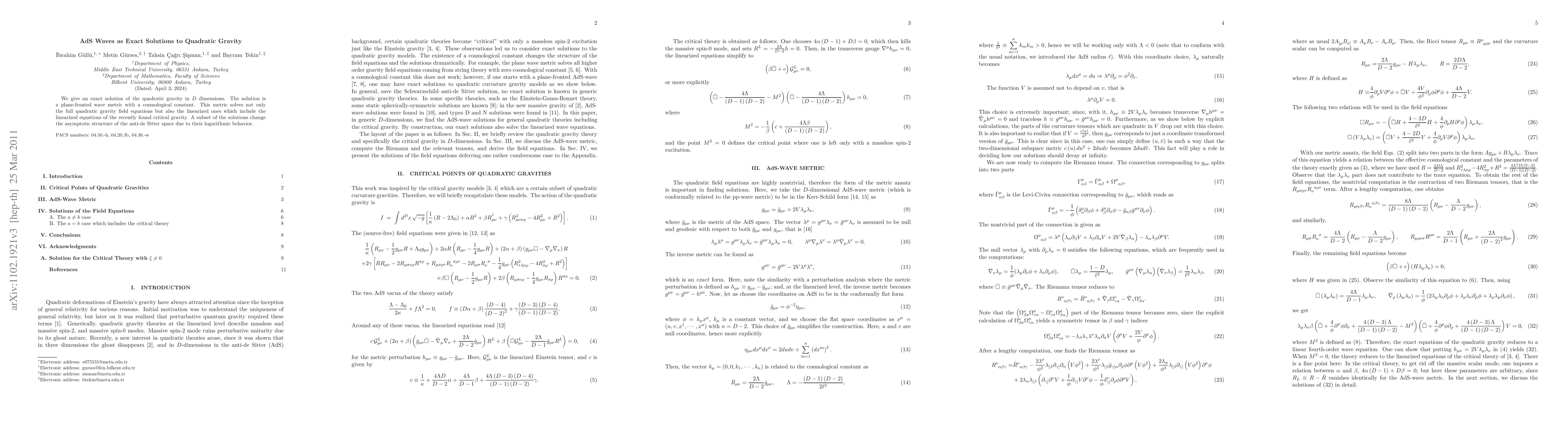 We give an exact solution of the quadratic gravity in D dimensions. The solution is a plane fronted wave metric with a cosmological constant. This metric solves not only the full quadratic gravity field equations but also the linearized ones which include the linearized equations of the recently found critical gravity. A subset of the solutions change the asymptotic structure of the anti-de Sitter space due to their logarithmic behavior.