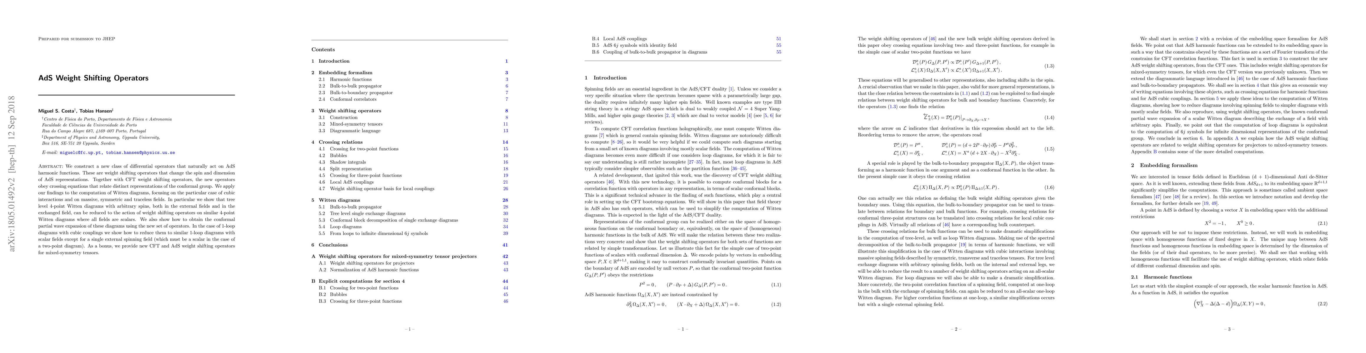 This paper introduces novel weight shifting operators acting on AdS harmonic functions, which modify the spin and dimension of AdS representations. These operators, along with CFT counterparts, satisfy crossing equations and simplify the computation of Witten diagrams, particularly for cubic interactions and massive fields.