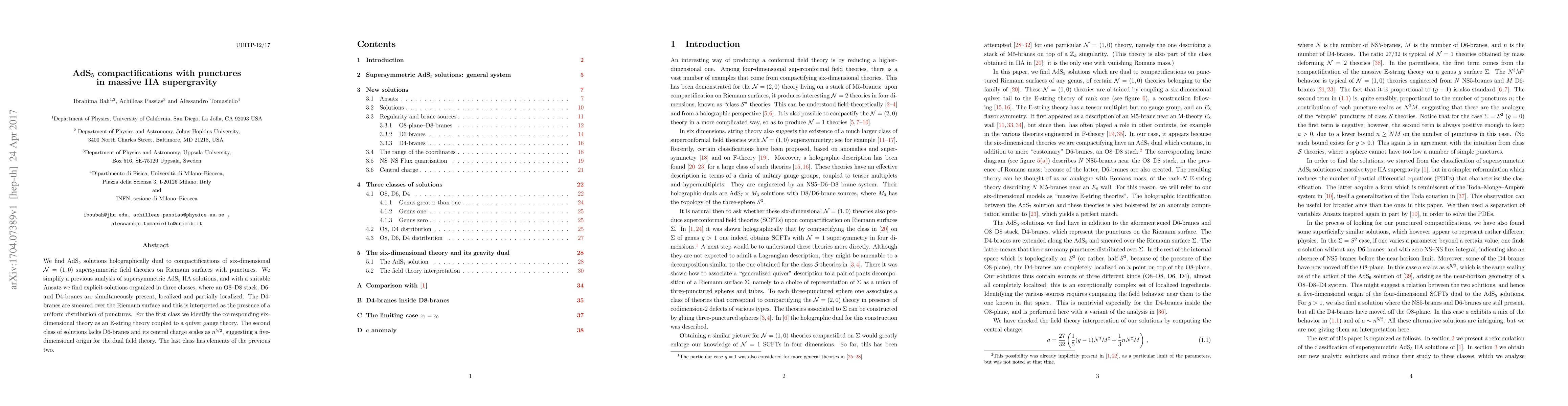 We find AdS5 solutions holographically dual to compactifications of six-dimensional N=(1,0) supersymmetric field theories on Riemann surfaces with punctures. We simplify a previous analysis of supersymmetric AdS5 IIA solutions, and with a suitable Ansatz we find explicit solutions organized in three classes, where an O8--D8 stack, D6- and D4-branes are simultaneously present, localized and partially localized. The D4-branes are smeared over the Riemann surface and this is interpreted as the presence of a uniform distribution of punctures. For the first class we identify the corresponding six-dimensional theory as an E-string theory coupled to a quiver gauge theory. The second class of solutions lacks D6-branes and its central charge scales as $n^{5/2}$, suggesting a five-dimensional origin for the dual field theory. The last class has elements of the previous two.