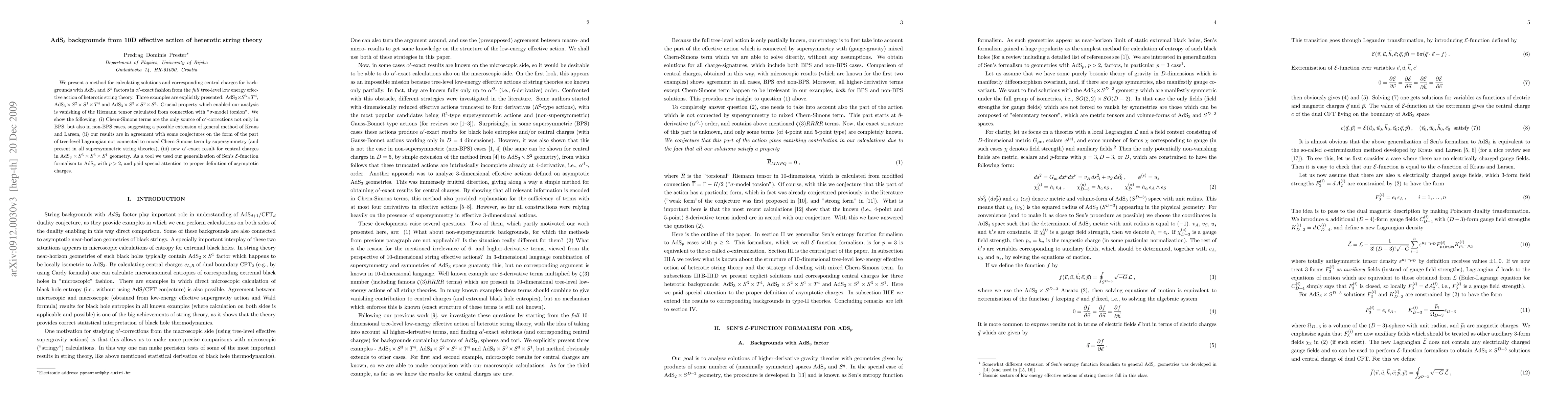 This research outlines a method to determine AdS_3 solutions and their central charges from the effective action of heterotic string theory, specifically focusing on alpha'-exact calculations. Key findings include identifying Chern-Simons terms as the primary source of alpha'-corrections, confirming conjectures regarding tree-level Lagrangians, and presenting new results for central charges in specific AdS_3 geometries.