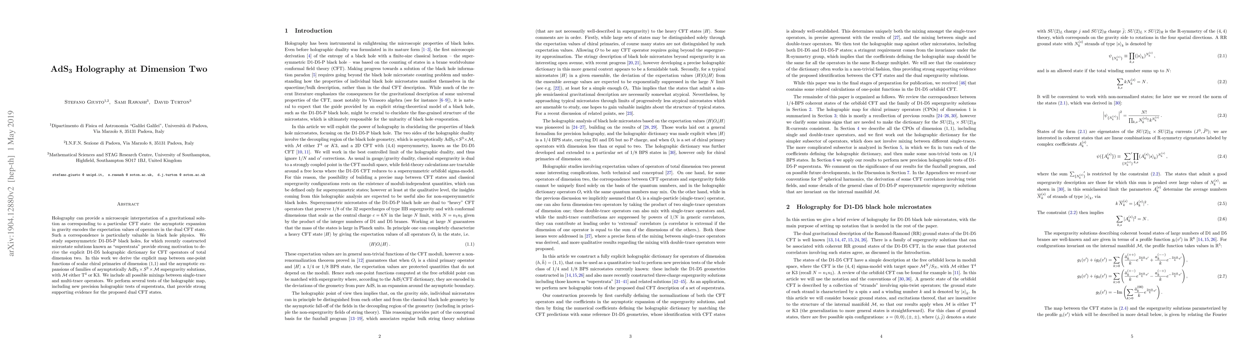 This paper derives the explicit holographic dictionary for CFT operators of total dimension two in the context of supersymmetric D1-D5-P black holes, mapping scalar chiral primaries to asymptotically AdS$_3$ solutions. The study supports the proposed dual CFT states through precision tests of superstrata.