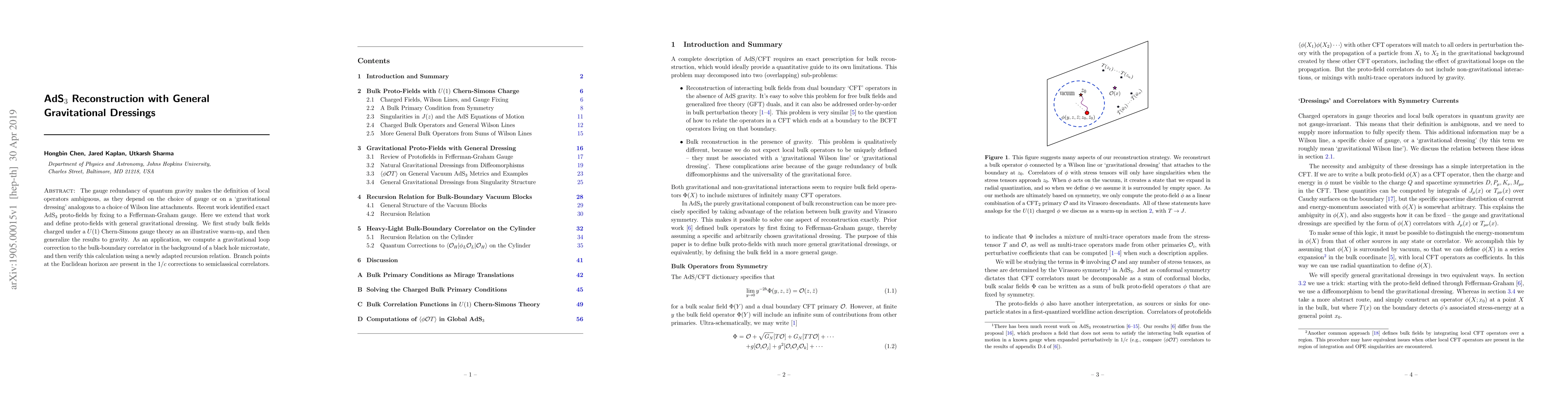 The gauge redundancy of quantum gravity makes the definition of local operators ambiguous, as they depend on the choice of gauge or on a `gravitational dressing' analogous to a choice of Wilson line attachments. Recent work identified exact AdS$_3$ proto-fields by fixing to a Fefferman-Graham gauge. Here we extend that work and define proto-fields with general gravitational dressing. We first study bulk fields charged under a $U(1)$ Chern-Simons gauge theory as an illustrative warm-up, and then generalize the results to gravity. As an application, we compute a gravitational loop correction to the bulk-boundary correlator in the background of a black hole microstate, and then verify this calculation using a newly adapted recursion relation. Branch points at the Euclidean horizon are present in the $1/c$ corrections to semiclassical correlators.