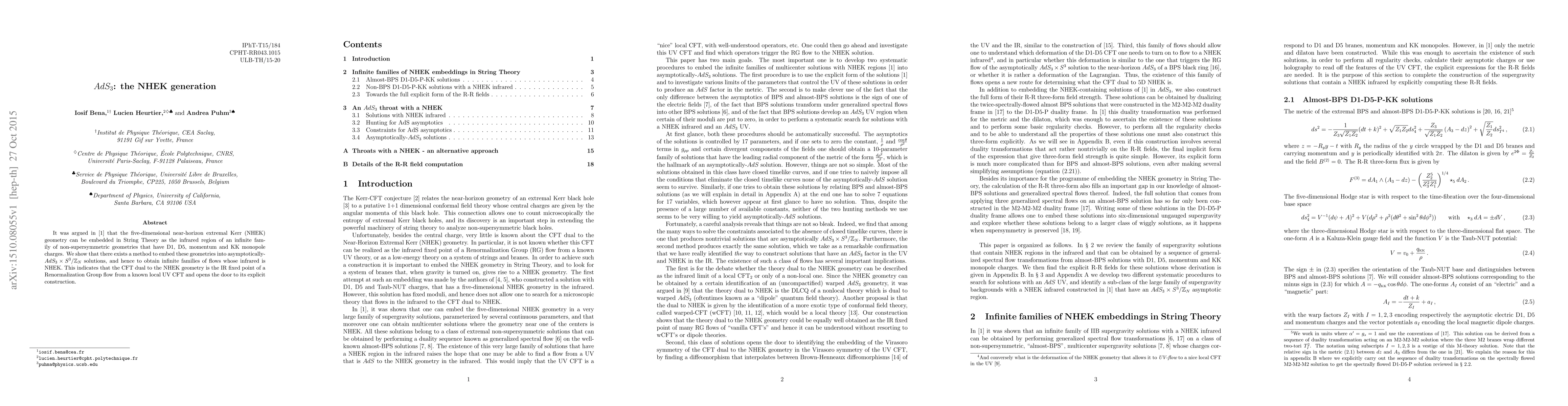 This paper demonstrates a method to embed the five-dimensional near-horizon extremal Kerr (NHEK) geometry into asymptotically-AdS_3 x S^3/Z_N solutions, revealing infinite families of flows with NHEK as their infrared limit. This implies that the CFT dual to NHEK is the IR fixed point of a Renormalization Group flow from a known UV CFT, paving the way for its explicit construction.