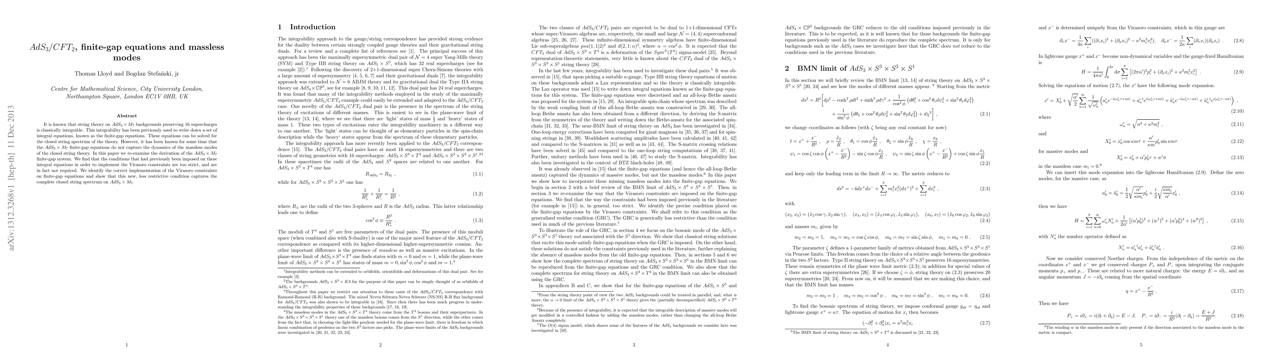 It is known that string theory on $AdS_3\times M_7$ backgrounds preserving 16 supercharges is classically integrable. This integrability has been previously used to write down a set of integral equations, known as the finite-gap equations. These equations can be solved for the closed string spectrum of the theory. However, it has been known for some time that the $AdS_3\times M_7$ finite-gap equations do not capture the dynamics of the massless modes of the closed string theory. In this paper we re-examine the derivation of the $AdS_3\times M_7$ finite-gap system. We find that the conditions that had previously been imposed on these integral equations in order to implement the Virasoro constraints are too strict, and are in fact not required. We identify the correct implementation of the Virasoro constraints on finite-gap equations and show that this new, less restrictive condition captures the complete closed string spectrum on $AdS_3\times M_7$.