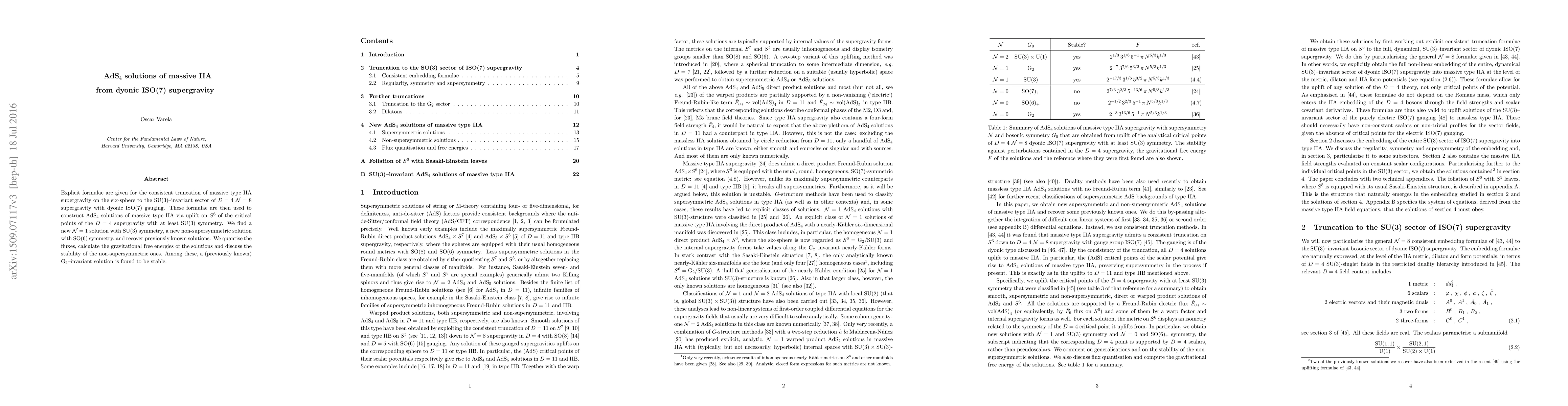 This paper presents explicit constructions for AdS$_4$ solutions in massive type IIA supergravity obtained from truncating the SU(3)-invariant sector of $D=4$ $\mathcal{N}=8$ supergravity with dyonic ISO(7) gauging. It identifies new $\mathcal{N}=1$ and non-supersymmetric solutions, quantizes their fluxes, computes gravitational free energies, and assesses the stability, finding one G$_2$-invariant solution to be stable.