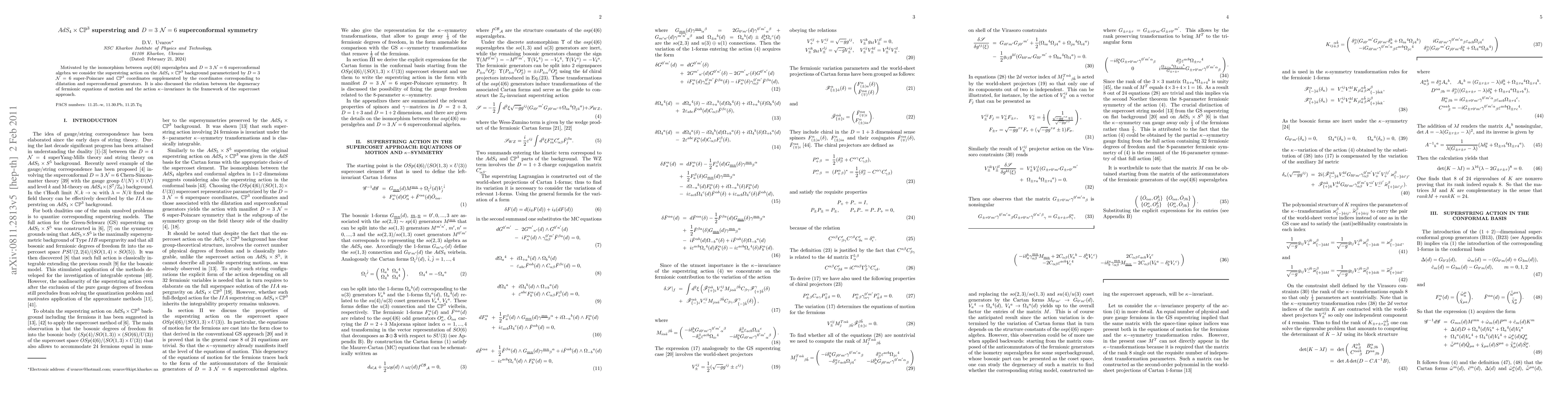 This paper explores the superstring action on the AdS_4 x CP^3 background, highlighting the D=3 N=6 superconformal symmetry and its relation to the osp(4|6) superalgebra. It discusses the kappa-invariance and the connection between fermionic equations of motion degeneracy and the supercoset approach.