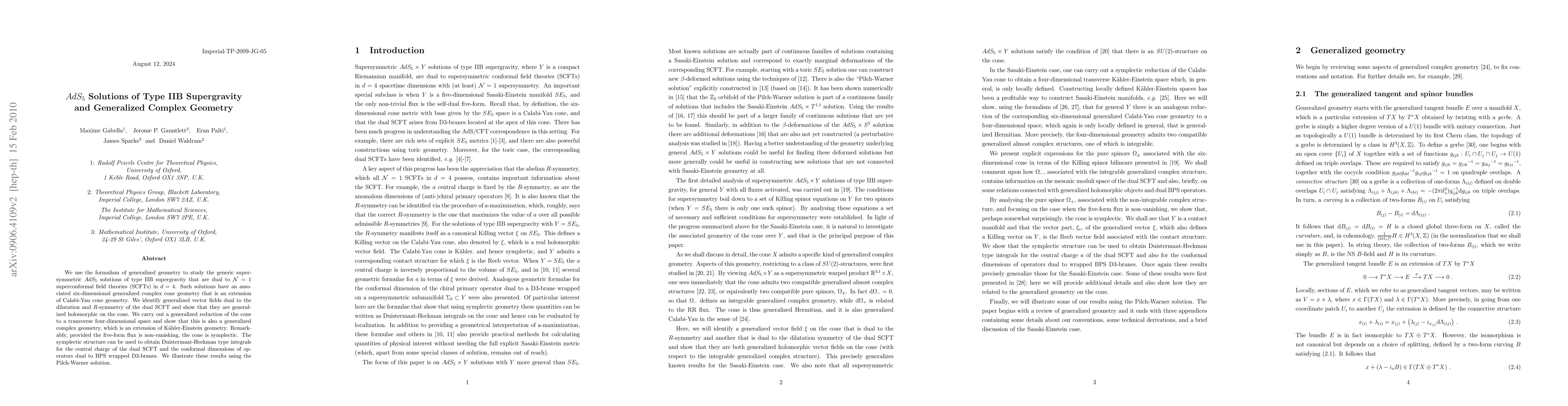 This paper explores supersymmetric AdS_5 solutions in type IIB supergravity using generalized complex geometry, revealing a six-dimensional generalized complex cone geometry. It identifies generalized vector fields dual to the SCFT's symmetries and demonstrates their holomorphicity on the cone, leading to a symplectic structure that aids in calculating central charges and conformal dimensions.