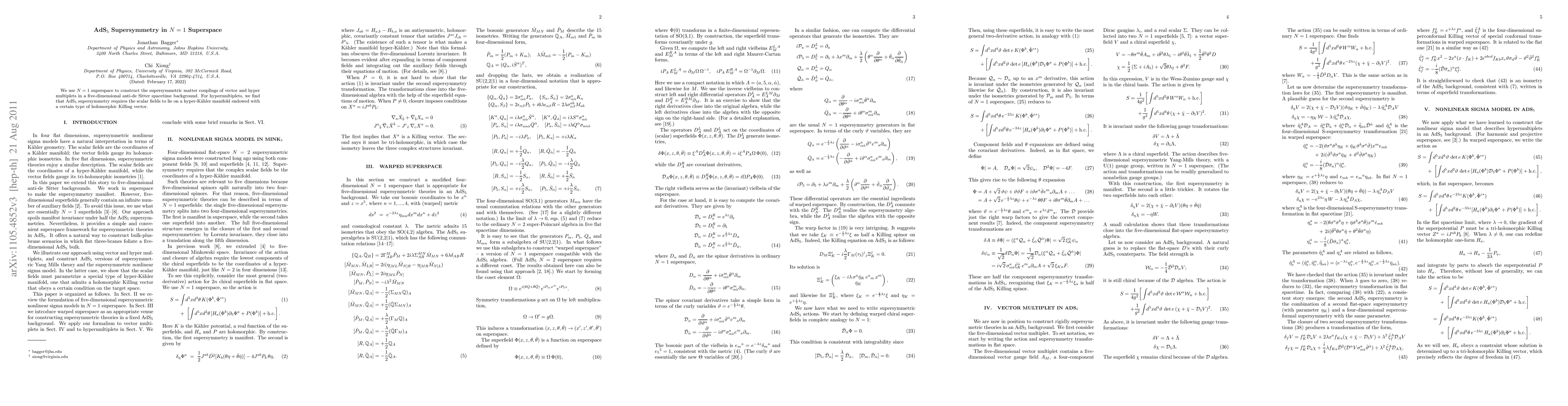 This paper constructs supersymmetric matter couplings in five-dimensional anti-de Sitter (AdS_5) spacetime using N=1 superspace, focusing on vector and hyper multiplets. It reveals that AdS_5 supersymmetry necessitates scalar fields in hypermultiplets to reside on a hyper-Kähler manifold with a specific holomorphic Killing vector.