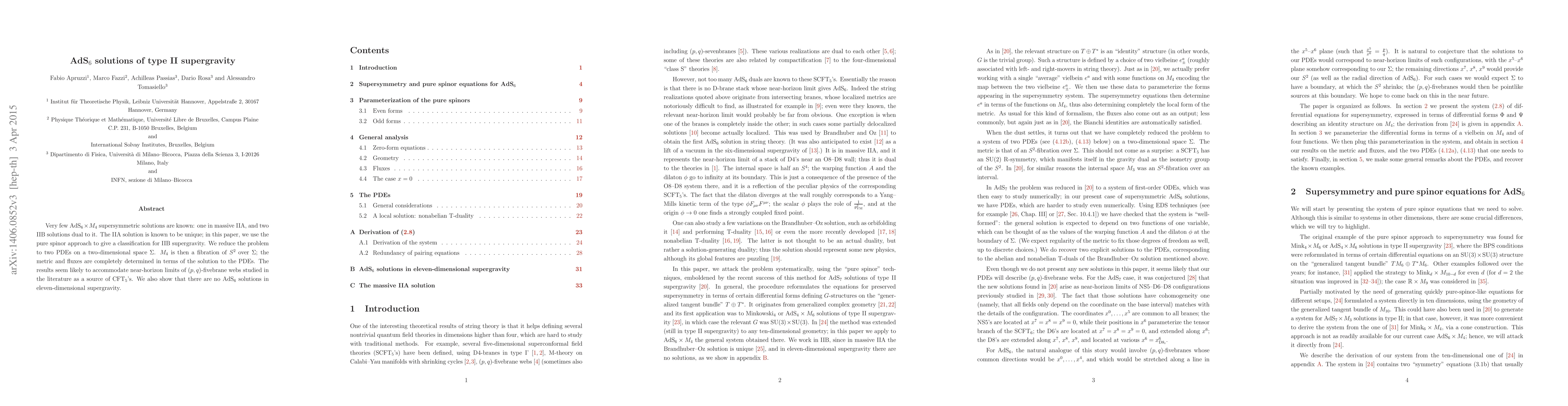 This paper classifies IIB supergravity solutions using the pure spinor approach, reducing the problem to two PDEs on a two-dimensional space. The solutions determine the metric and fluxes, potentially linking to near-horizon limits of (p,q)-fivebrane webs, while also confirming the absence of AdS_6 solutions in eleven-dimensional supergravity.