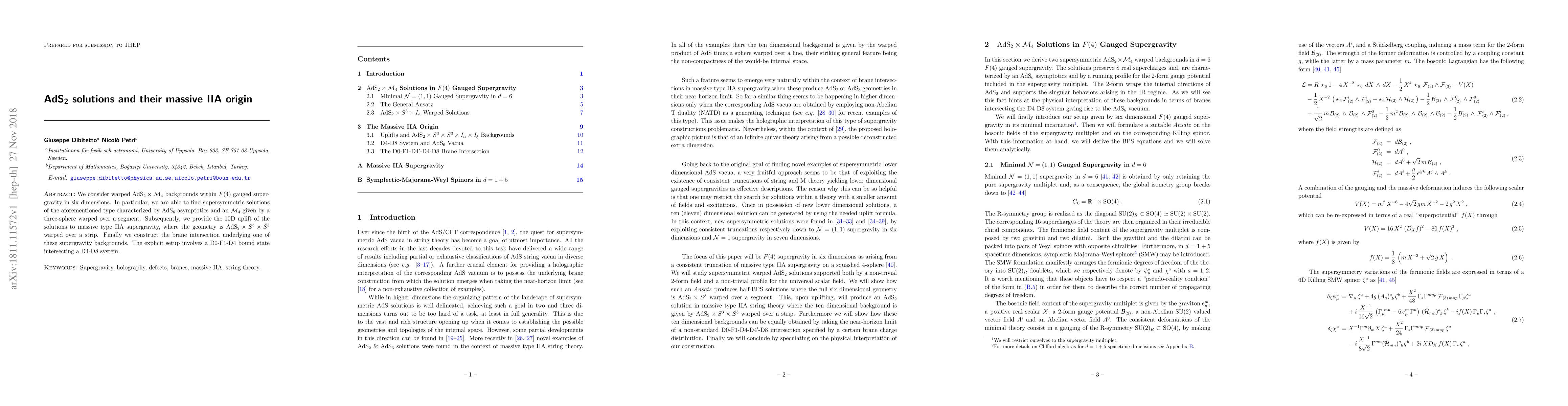 We consider warped $\mathrm{AdS}_2\times \mathcal M_4$ backgrounds within $F(4)$ gauged supergravity in six dimensions. In particular, we are able to find supersymmetric solutions of the aforementioned type characterized by $\textrm{AdS}_{6}$ asymptotics and an $\mathcal M_4$ given by a three-sphere warped over a segment. Subsequently, we provide the 10D uplift of the solutions to massive type IIA supergravity, where the geometry is $\mathrm{AdS}_2\times S^{3}\times\tilde{S}^3$ warped over a strip. Finally we construct the brane intersection underlying one of these supergravity backgrounds. The explicit setup involves a D0-F1-D4 bound state intersecting a D4-D8 system.