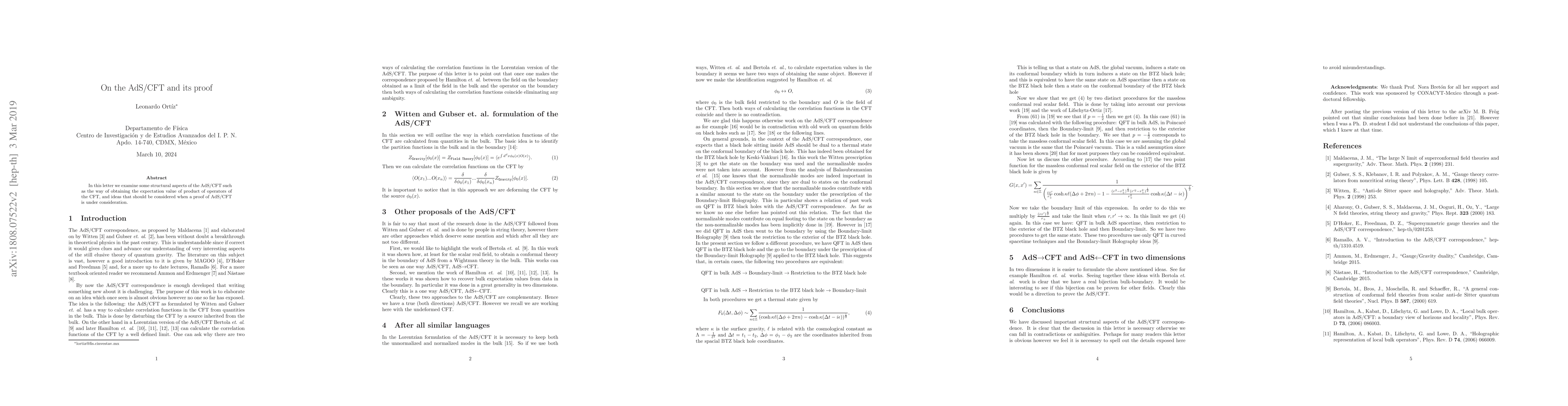 In this letter we examine some structural aspects of the AdS/CFT such as the way of obtaining the expectation value of product of operators of the CFT, and ideas that should be considered when a proof of AdS/CFT is under consideration.