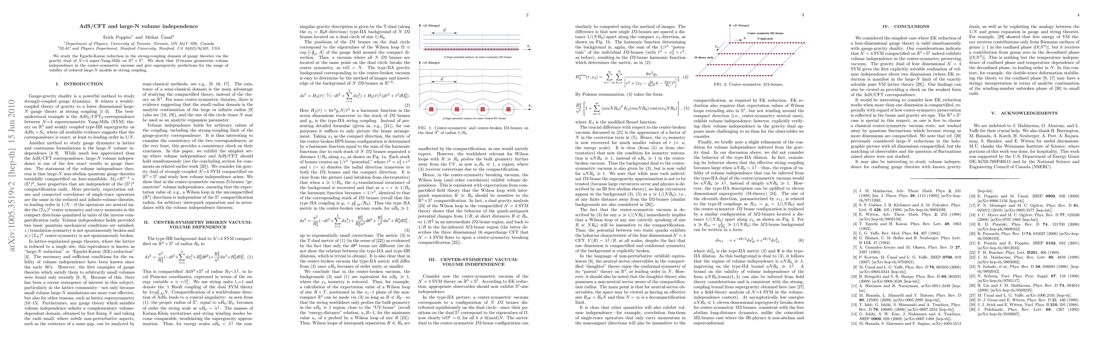 This paper investigates the Eguchi-Kawai reduction in the strong-coupling regime of gauge theories using the AdS/CFT correspondence for N=4 super-Yang-Mills. It demonstrates that D-branes geometrically explain volume independence in the center-symmetric vacuum and provides supergravity predictions for the applicability of large-N models at strong coupling.