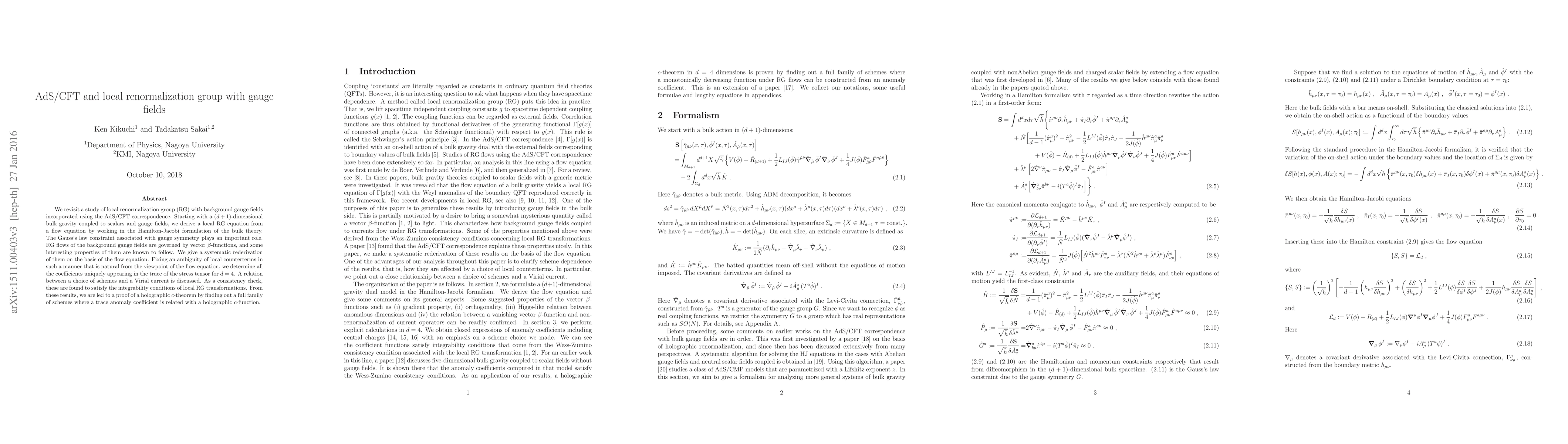 Researchers revisited local renormalization group with gauge fields using AdS/CFT correspondence to derive a local RG equation and found a full family of schemes where a trace anomaly coefficient is related to a holographic c-function.