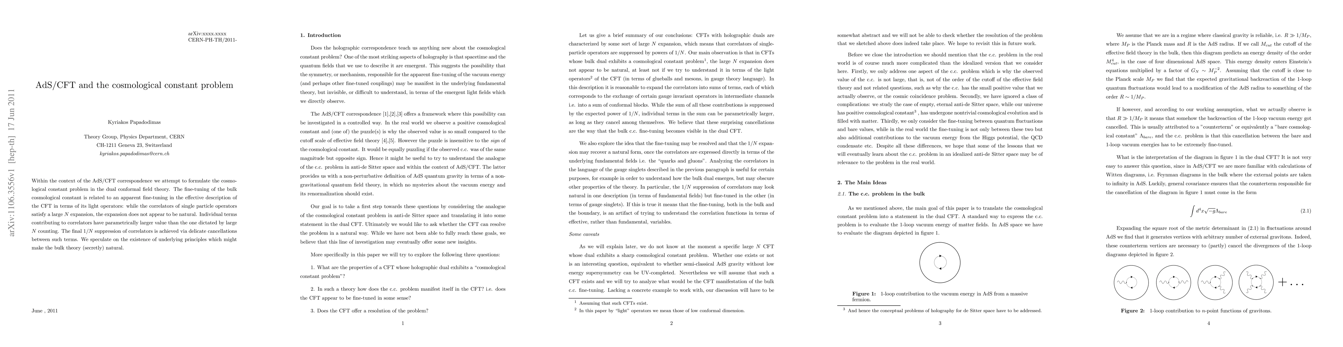 Within the context of the AdS/CFT correspondence we attempt to formulate the cosmological constant problem in the dual conformal field theory. The fine-tuning of the bulk cosmological constant is related to an apparent fine-tuning in the effective description of the CFT in terms of its light operators: while the correlators of single particle operators satisfy a large N expansion, the expansion does not appear to be natural. Individual terms contributing to correlators have parametrically larger value than the one dictated by large N counting. The final 1/N suppression of correlators is achieved via delicate cancellations between such terms. We speculate on the existence of underlying principles which might make the bulk theory (secretly) natural.