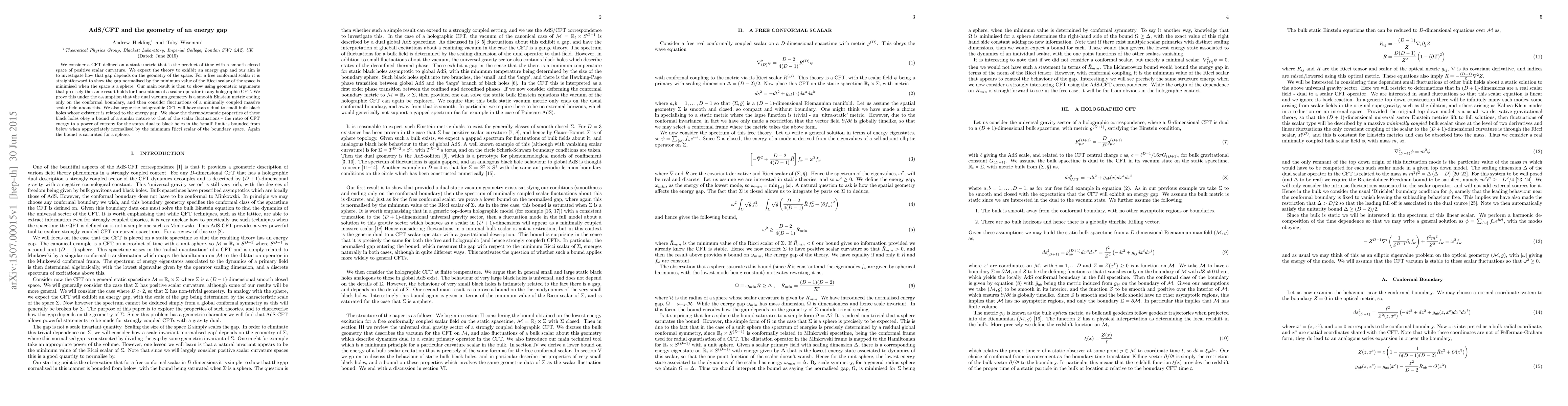 We consider a CFT defined on a static metric that is the product of time with a smooth closed space of positive scalar curvature. We expect the theory to exhibit an energy gap and our aim is to investigate how that gap depends on the geometry of the space. For a free conformal scalar it is straightforward to show the gap normalised by the minimum value of the Ricci scalar of the space is minimised when the space is a sphere. Our main result is then to show using geometric arguments that precisely the same result holds for fluctuations of a scalar operator in any holographic CFT. We prove this under the assumption that the dual vacuum geometry is a smooth Einstein metric ending only on the conformal boundary, and then consider fluctuations of a minimally coupled massive scalar field about this. We also argue the holographic CFT will have states dual to small bulk black holes whose existence is related to the energy gap. We show the thermodynamic properties of these black holes obey a bound of a similar nature to that of the scalar fluctuations - the ratio of CFT energy to a power of entropy for the states dual to black holes in the 'small' limit is bounded from below when appropriately normalised by the minimum Ricci scalar of the boundary space. Again the bound is saturated for a sphere.