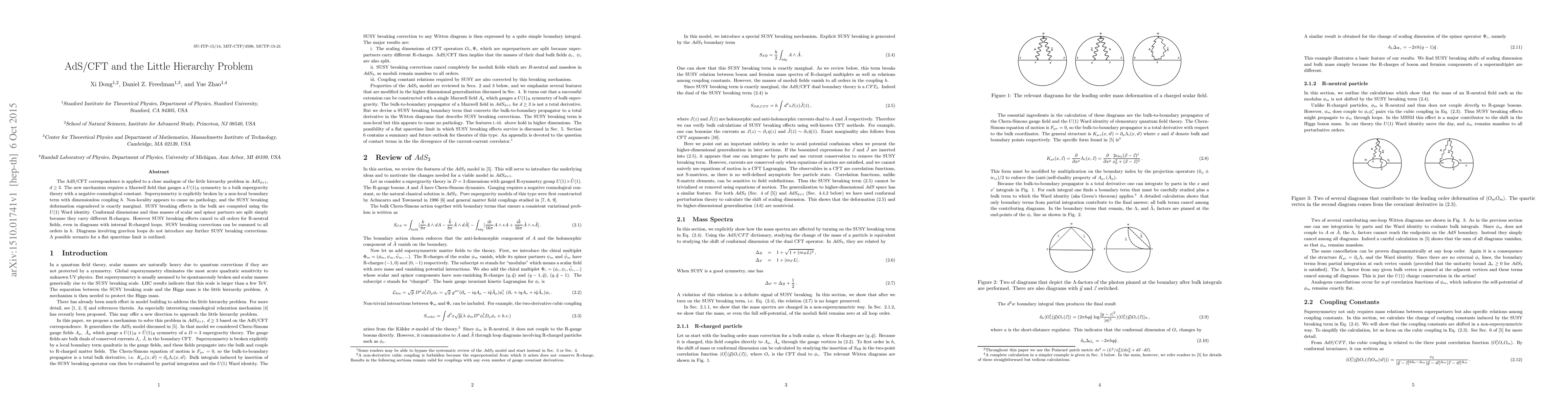 The AdS/CFT correspondence is applied to a close analogue of the little hierarchy problem in $AdS_{d+1}$, $d \geq 3$. The new mechanism requires a Maxwell field that gauges a $U(1)_R$ symmetry in a bulk supergravity theory with a negative cosmological constant. Supersymmetry is explicitly broken by a non-local boundary term with dimensionless coupling $h$. Non-locality appears to cause no pathology, and the SUSY breaking deformation engendered is exactly marginal. SUSY breaking effects in the bulk are computed using the $U(1)$ Ward identity. Conformal dimensions and thus masses of scalar and spinor partners are split simply because they carry different R-charges. However SUSY breaking effects cancel to all orders for R-neutral fields, even in diagrams with internal R-charged loops. SUSY breaking corrections can be summed to all orders in $h$. Diagrams involving graviton loops do not introduce any further SUSY breaking corrections. A possible scenario for a flat spacetime limit is outlined.