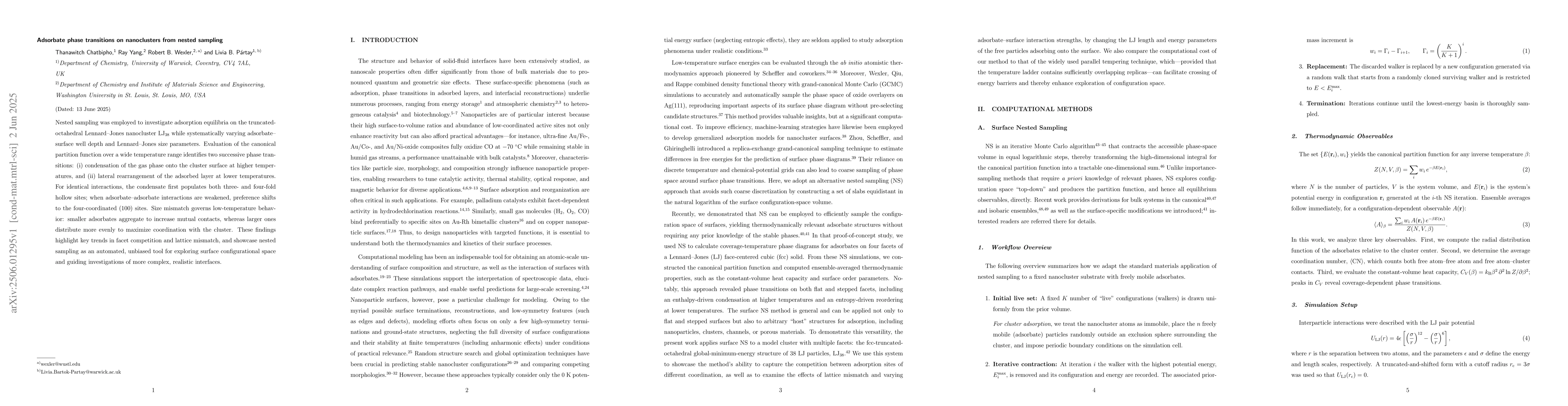 Demonstrating the effectiveness of nested sampling in identifying adsorbate phase transitions on nanoclusters and elucidating the roles of facet competition and lattice mismatch.