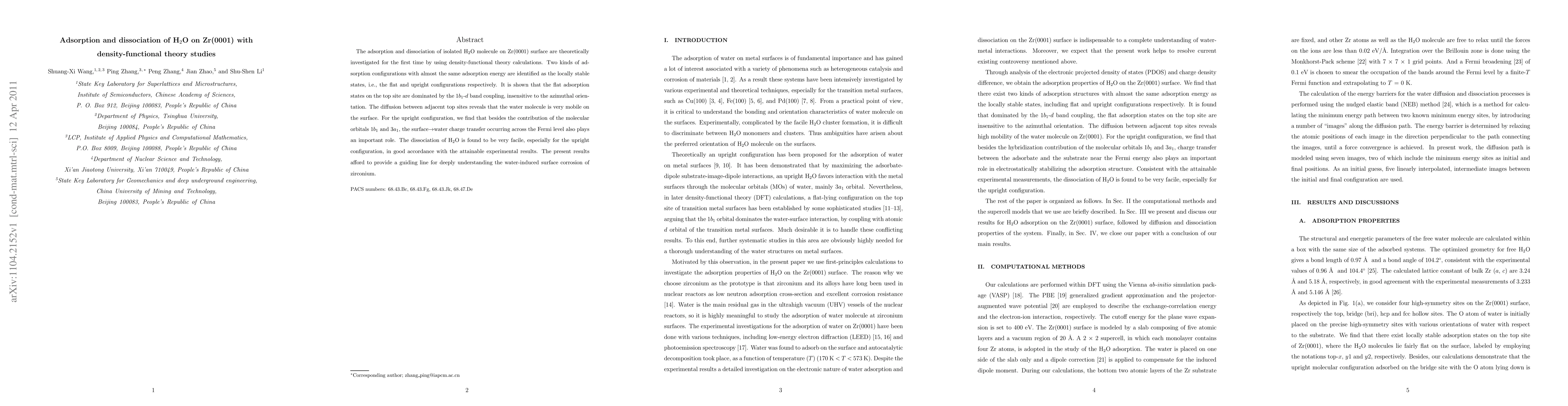 This study uses density-functional theory to investigate water adsorption and dissociation on Zr(0001) surface, identifying two stable configurations and demonstrating the facile dissociation, particularly for upright adsorption, thus offering insights into zirconium's water-induced corrosion.