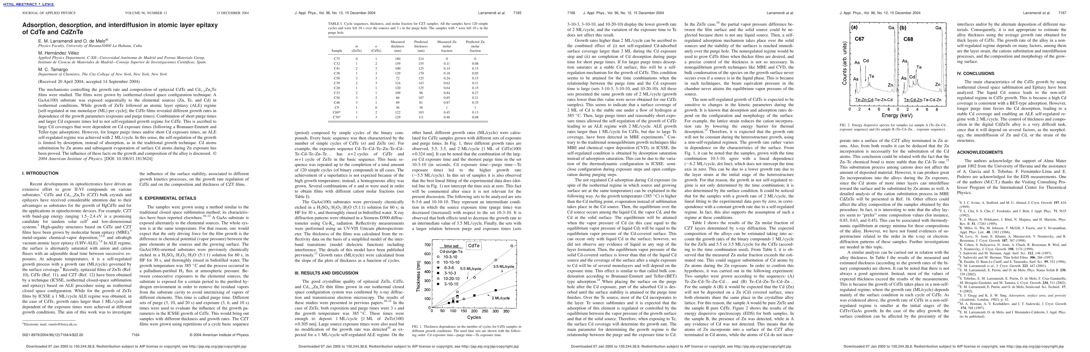 The mechanisms controlling the growth rate and composition of epitaxial CdTe and CdZnTe films were studied. The films were grown by isothermal closed space configuration technique. A GaAs 100 substrate was exposed sequentially to the elemental sources, Zn, Te, and Cd, in isothermal conditions. While growth of ZnTe followed an atomic layer epitaxy, ALE, regime self regulated at one monolayer per cycle; the CdTe films revealed different growth rates in dependence of the growth parameters,exposure and purge times. Combination of short purge times and larger Cd exposure times led to not self regulated growth regime for CdTe. This is ascribed to large Cd coverages that were dependent on Cd exposure times, following a Brunauer-Emmett and Teller-type adsorption. However, for longer purge times and or short Cd exposure times, an ALE self regulated regime was achieved with 2 ML per cycle. In this sense, the self-regulation of the growth is limited by desorption, instead of absorption, as in the traditional growth technique. Cd atoms substitution by Zn atoms and subsequent evaporation of surface Cd atoms during Zn exposure has been proved. The influence of these facts on the growth and composition of the alloy is discussed.