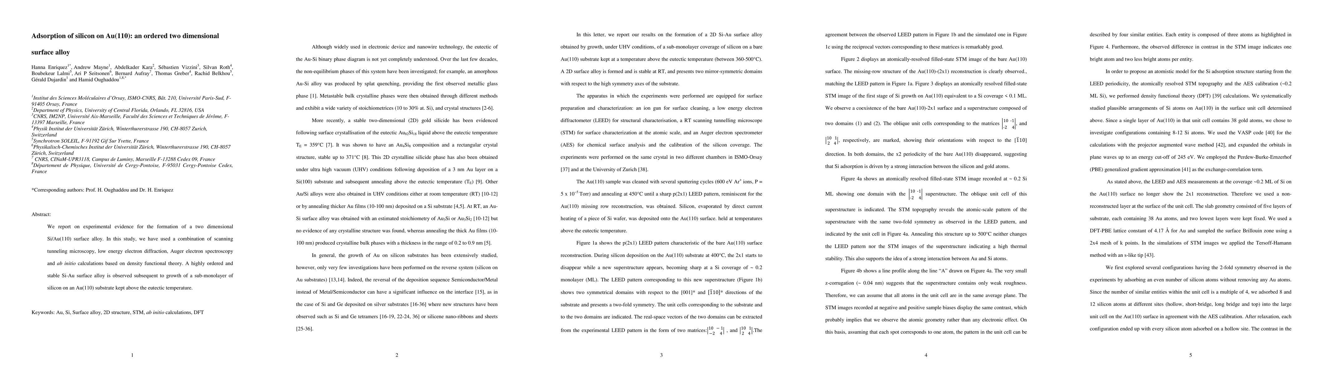 Summary: Researchers observed the formation of a stable, highly ordered two-dimensional Si/Au(110) surface alloy using scanning tunneling microscopy, low energy electron diffraction, and ab initio calculations. The alloy forms when silicon is grown on an Au(110) substrate at temperatures above the eutectic point.
