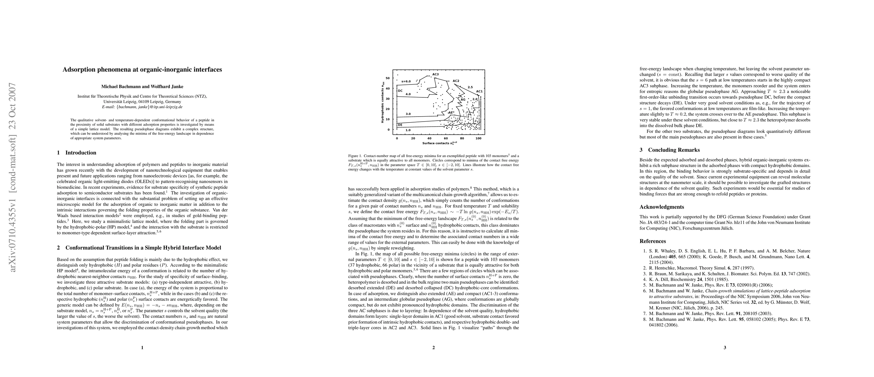 The qualitative solvent- and temperature-dependent conformational behavior of a peptide in the proximity of solid substrates with different adsorption properties is investigated by means of a simple lattice model. The resulting pseudophase diagrams exhibit a complex structure, which can be understood by analysing the minima of the free-energy landscape in dependence of appropriate system parameters.