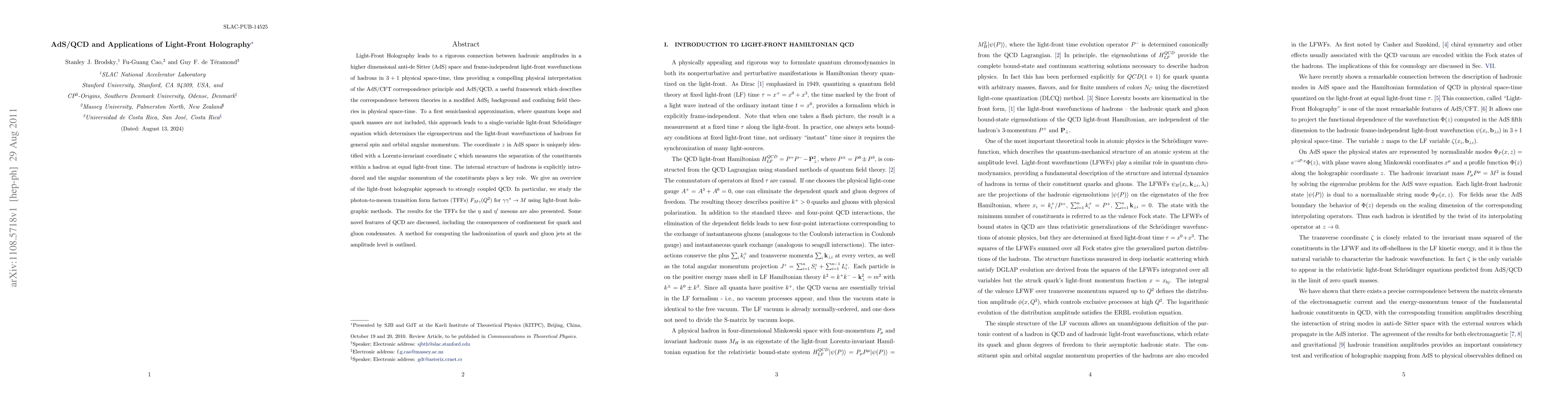 This paper explores Light-Front Holography to connect AdS/QCD with hadronic amplitudes, deriving a single-variable light-front Schrödinger equation for hadron eigenspectrum and wavefunctions. It applies this framework to compute photon-to-meson transition form factors and discusses implications for quark and gluon condensates.