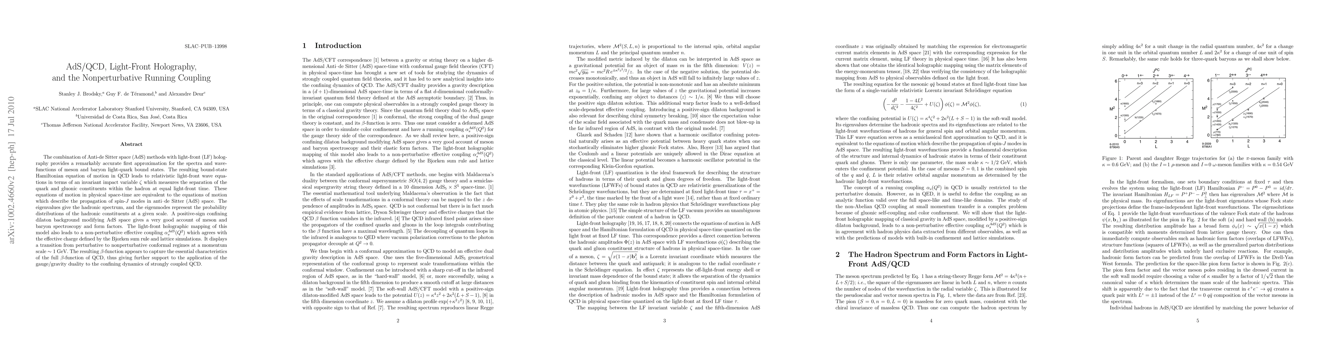 This paper combines AdS methods with light-front holography to model the spectra and wavefunctions of meson and baryon light-quark bound states, deriving a nonperturbative running coupling that agrees with experimental results and lattice simulations, and indicating a transition from perturbative to nonperturbative behavior at around 1 GeV.