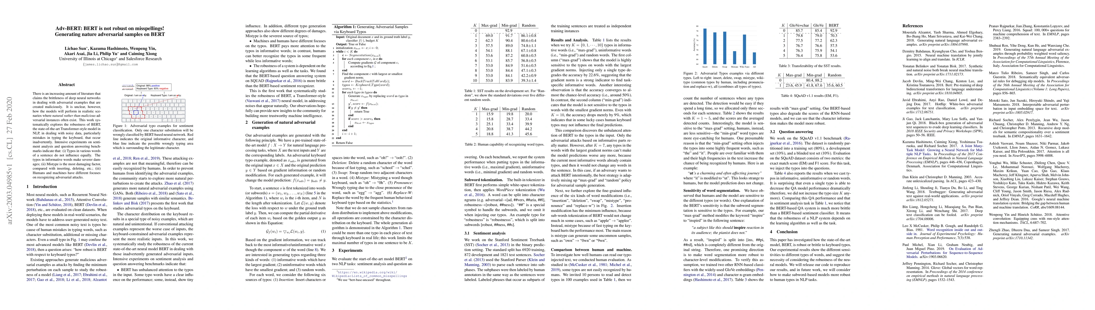 The paper examines BERT's robustness to natural adversarial instances, such as typos. It finds that typos in informative words cause more harm than other errors, with mistypes being the most damaging. The study also reveals differences in how humans and machines perceive these adversarial attacks.