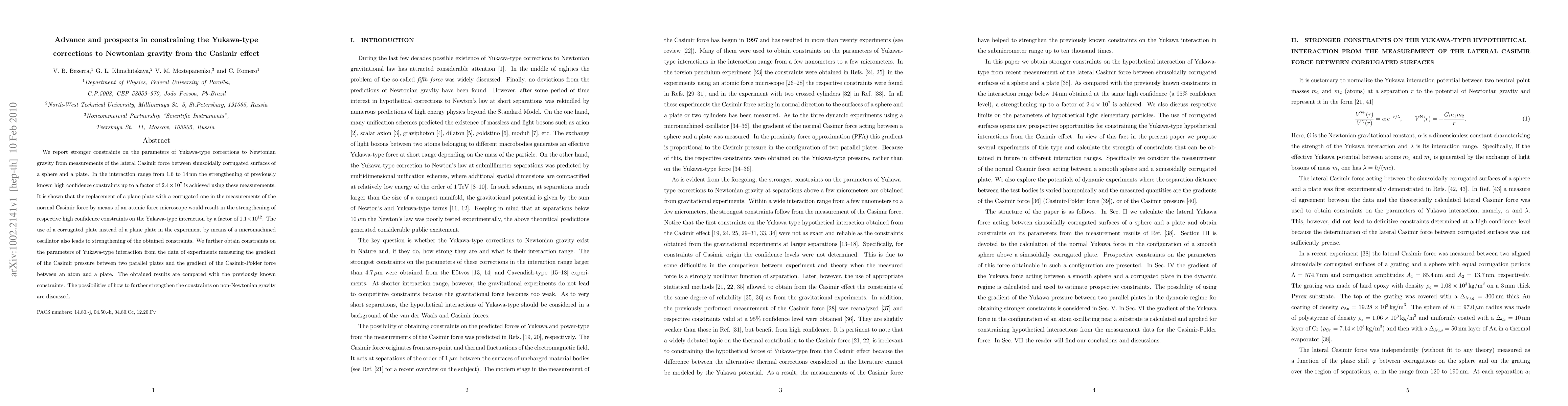 We report stronger constraints on the parameters of Yukawa-type corrections to Newtonian gravity from measurements of the lateral Casimir force between sinusoidally corrugated surfaces of a sphere and a plate. In the interaction range from 1.6 to 14 nm the strengthening of previously known high confidence constraints up to a factor of $2.4\times 10^7$ is achieved using these measurements. It is shown that the replacement of a plane plate with a corrugated one in the measurements of the normal Casimir force by means of an atomic force microscope would result in the strengthening of respective high confidence constraints on the Yukawa-type interaction by a factor of $1.1\times 10^{12}$. The use of a corrugated plate instead of a plane plate in the experiment by means of a micromachined oscillator also leads to strengthening of the obtained constraints. We further obtain constraints on the parameters of Yukawa-type interaction from the data of experiments measuring the gradient of the Casimir pressure between two parallel plates and the gradient of the Casimir-Polder force between an atom and a plate. The obtained results are compared with the previously known constraints. The possibilities of how to further strengthen the constraints on non-Newtonian gravity are discussed.