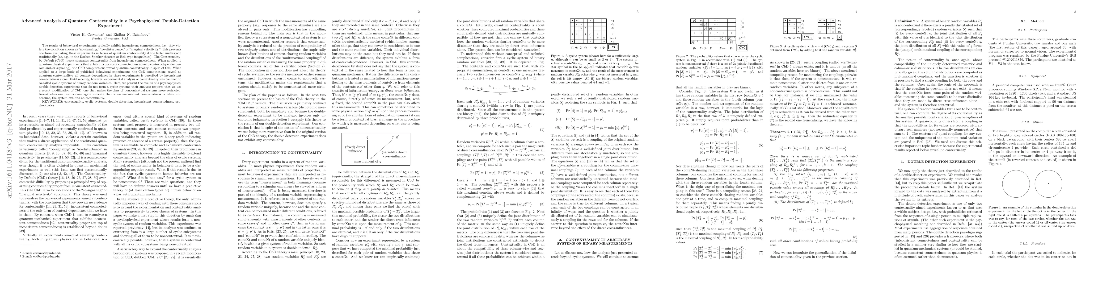 This paper explores quantum contextuality in a psychophysical double-detection experiment, revealing that despite the presence of inconsistent connectedness, the Contextuality-by-Default (CbD) theory shows no quantum contextuality. The study extends CbD analysis beyond cyclic systems, confirming that context-dependence in behavioral experiments is solely due to inconsistent connectedness.