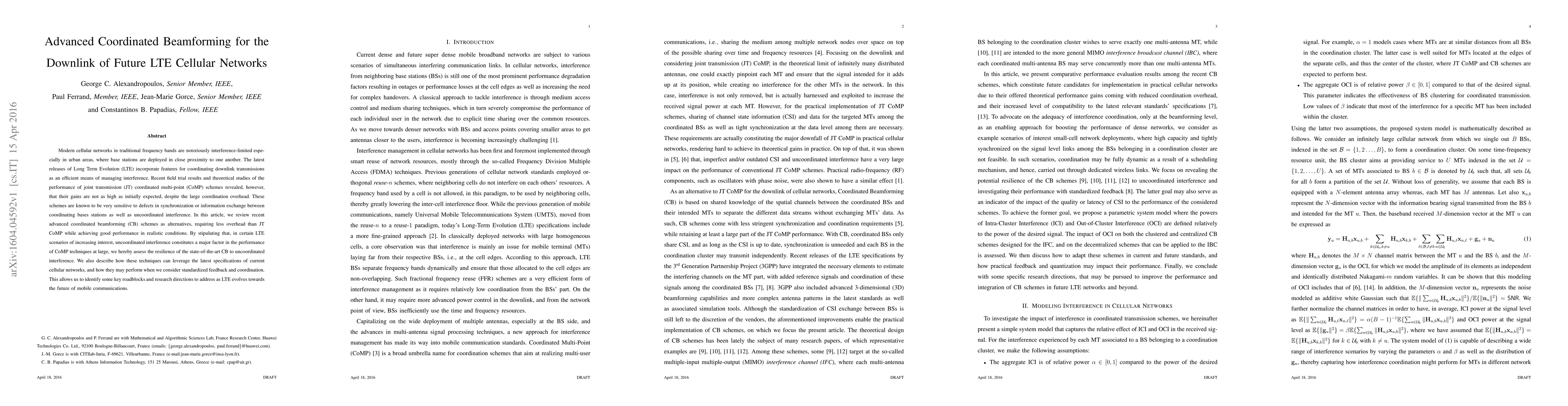 This paper reviews advanced coordinated beamforming (CB) schemes as alternatives to joint transmission coordinated multi-point (CoMP) for managing interference in future LTE networks, focusing on their lower overhead and resilience to uncoordinated interference. It identifies key challenges and research directions for improving CB techniques as LTE advances.