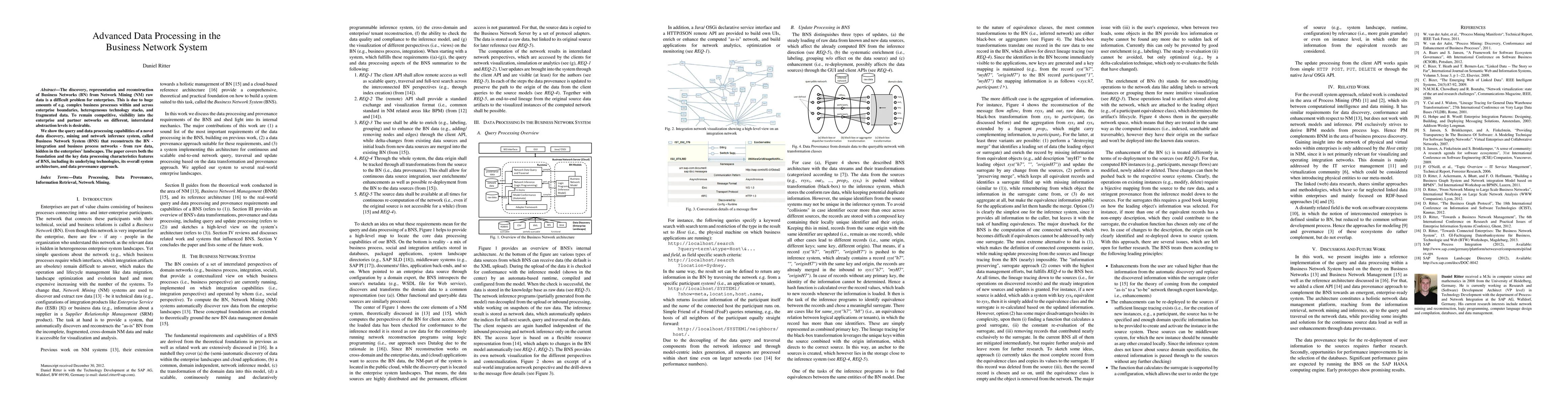 The discovery, representation and reconstruction of Business Networks (BN) from Network Mining (NM) raw data is a difficult problem for enterprises. This is due to huge amounts of e.g. complex business processes within and across enterprise boundaries, heterogeneous technology stacks, and fragmented data. To remain competitive, visibility into the enterprise and partner networks on different, interrelated abstraction levels is desirable. We show the query and data processing capabilities of a novel data discovery, mining and network inference system, called Business Network System (BNS) that reconstructs the BN--integration and business process networks - from raw data, hidden in the enterprises' landscapes. The paper covers both the foundation and the key data processing characteristics features of BNS, including its underlying technologies, its overall system architecture, and data provenance approach.