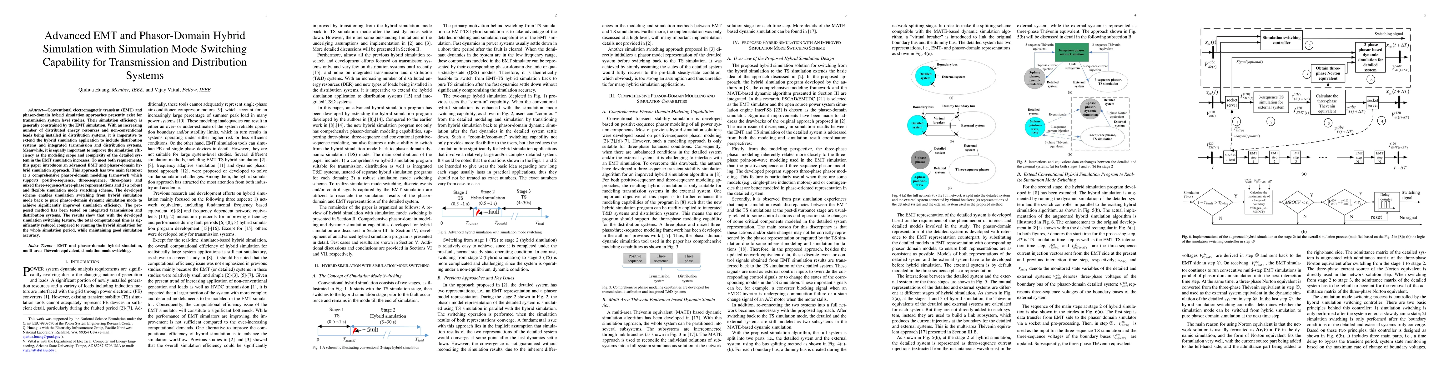 This paper introduces an advanced EMT and phasor-domain hybrid simulation approach for transmission and distribution systems, featuring a comprehensive phasor-domain modeling framework and a flexible simulation mode switching scheme to improve efficiency. The hybrid simulation method significantly reduces computational time while maintaining accuracy.