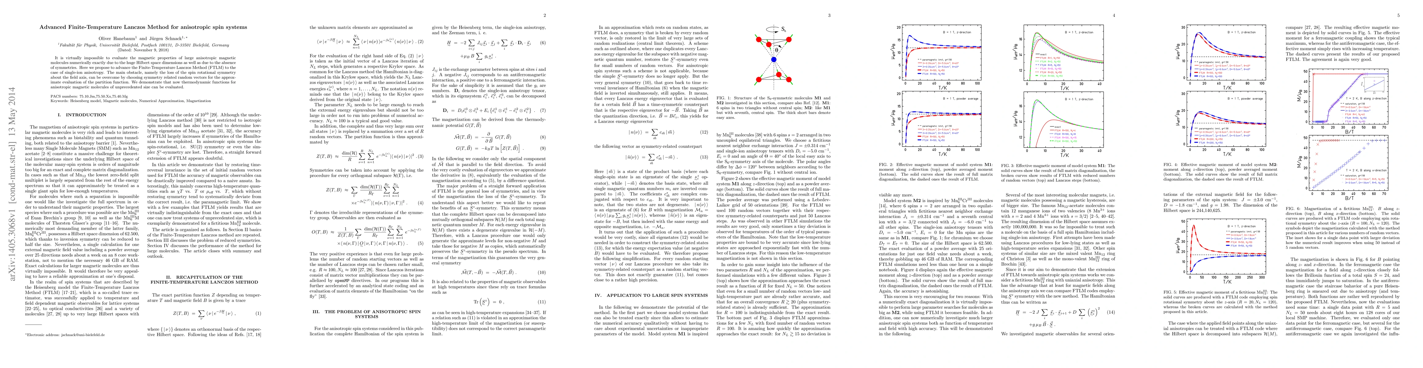 The research introduces an advanced Finite-Temperature Lanczos Method (FTLM) to handle large anisotropic magnetic molecules, overcoming symmetry loss issues. This enables the evaluation of thermodynamic functions for these molecules of unprecedented size.