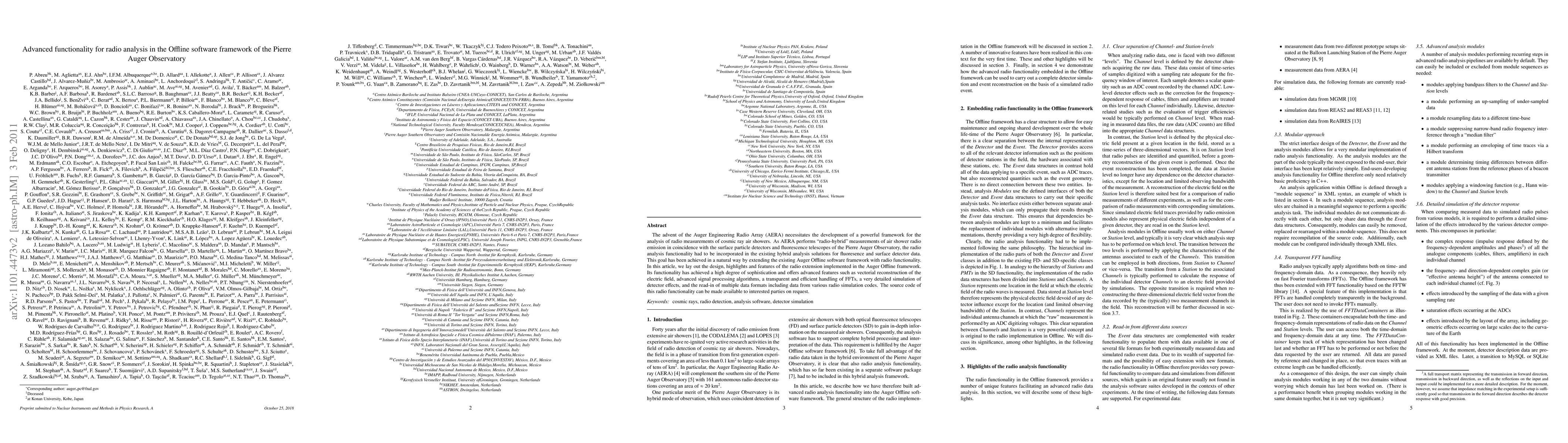 The paper details the development of advanced radio analysis functionality within the Pierre Auger Observatory's Offline software framework, enabling sophisticated analysis of "radio-hybrid" cosmic ray air shower measurements. The new radio extension features vectorial electric field reconstruction, advanced signal processing, and detailed detector effect simulation.