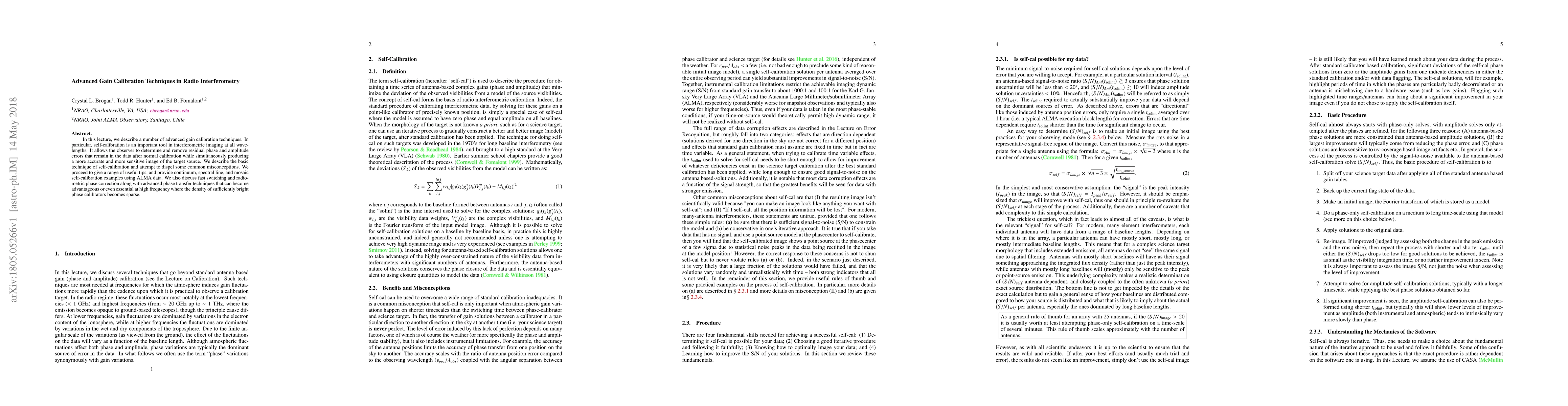 This paper discusses advanced gain calibration techniques for radio interferometry, focusing on self-calibration to correct residual phase and amplitude errors. It provides practical tips and examples using ALMA data, including fast switching and radiometric phase correction methods for high-frequency observations.