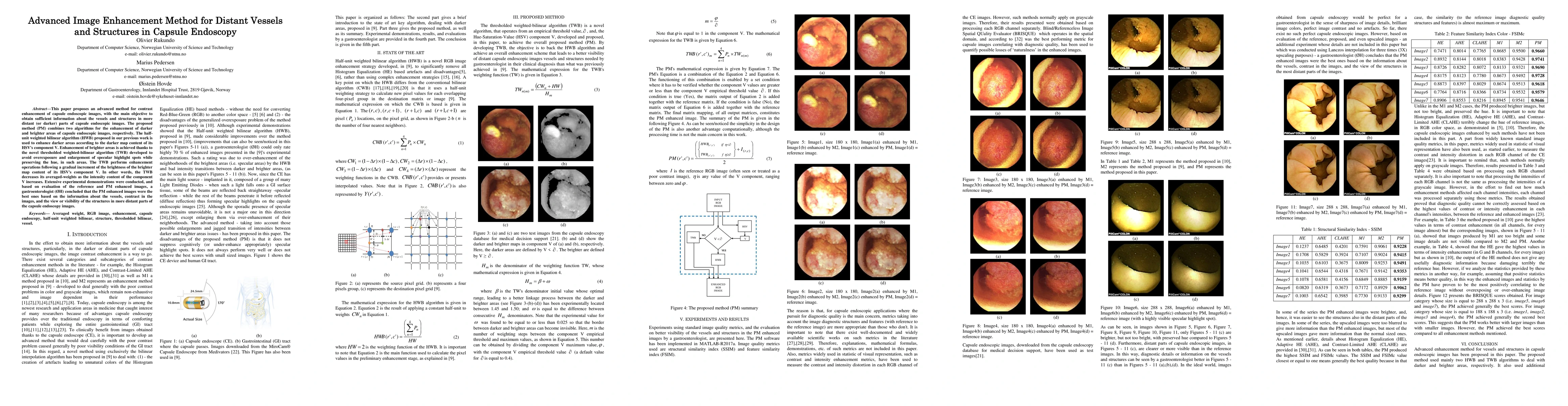 This paper proposes an advanced method combining HWB and TWB algorithms to enhance contrast in capsule endoscopic images, particularly for distant and darker areas. The method was evaluated and deemed superior by a gastroenterologist in terms of vessel information, image contrast, and visibility of distant structures.
