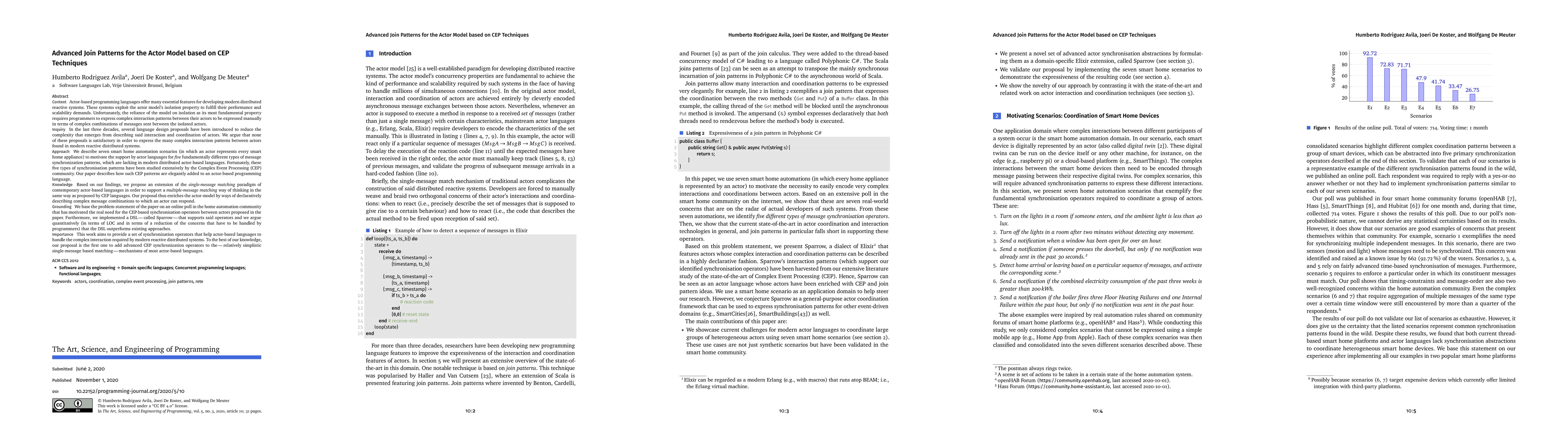 Context: Actor-based programming languages offer many essential features for developing modern distributed reactive systems. These systems exploit the actor model's isolation property to fulfill their performance and scalability demands. Unfortunately, the reliance of the model on isolation as its most fundamental property requires programmers to express complex interaction patterns between their actors to be expressed manually in terms of complex combinations of messages sent between the isolated actors. Inquiry: In the last three decades, several language design proposals have been introduced to reduce the complexity that emerges from describing said interaction and coordination of actors. We argue that none of these proposals is satisfactory in order to express the many complex interaction patterns between actors found in modern reactive distributed systems. Approach: We describe seven smart home automation scenarios (in which an actor represents every smart home appliance) to motivate the support by actor languages for five radically different types of message synchronization patterns, which are lacking in modern distributed actor-based languages. Fortunately, these five types of synchronisation patterns have been studied extensively by the Complex Event Processing (CEP) community. Our paper describes how such CEP patterns are elegantly added to an actor-based programming language. Knowledge: Based on our findings, we propose an extension of the single-message matching paradigm of contemporary actor-based languages in order to support a multiple-message matching way of thinking in the same way as proposed by CEP languages. Our proposal thus enriches the actor-model by ways of declaratively describing complex message combinations to which an actor can respond. Grounding: We base the problem-statement of the paper on an online poll in the home automation community that has motivated the real need for the CEP-based synchronisation operators between actors proposed in the paper. Furthermore, we implemented a DSL -- called Sparrow -- that supports said operators and we argue quantitatively (in terms of LOC and in terms of a reduction of the concerns that have to be handled by programmers) that the DSL outperforms existing approaches. Importance: This work aims to provide a set of synchronization operators that help actor-based languages to handle the complex interaction required by modern reactive distributed systems. To the best of our knowledge, our proposal is the first one to add advanced CEP synchronization operators to the -- relatively simplistic single-message based matching -- mechanisms of most actor-based languages.