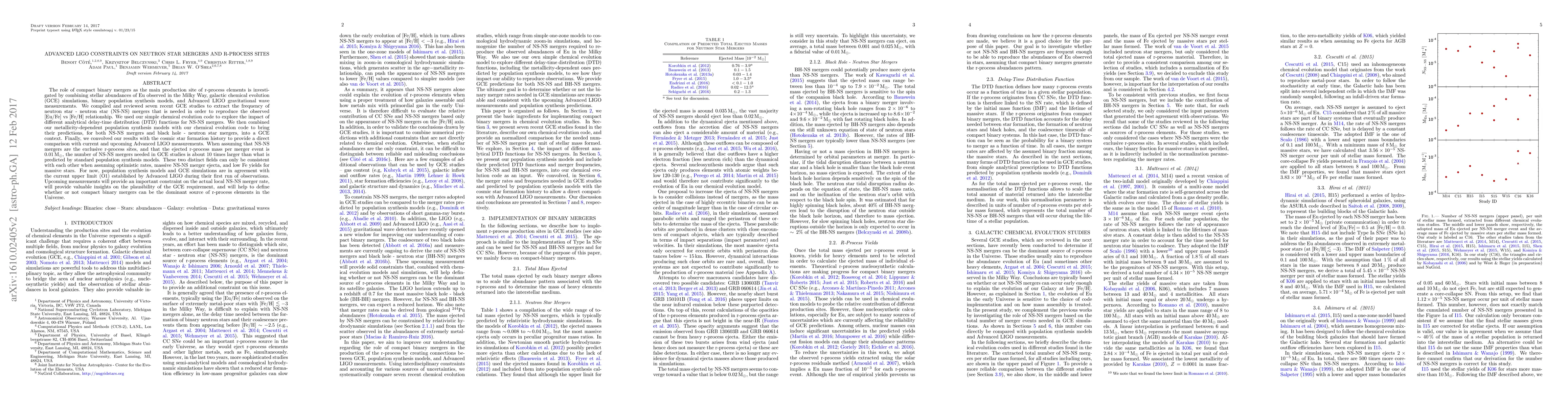 A study investigates whether neutron star mergers can produce r-process elements, finding that optimistic rates and massive merger ejecta are needed for consistency between population synthesis models and galaxy chemical evolution simulations. The results align with the current upper limit established by Advanced LIGO measurements.