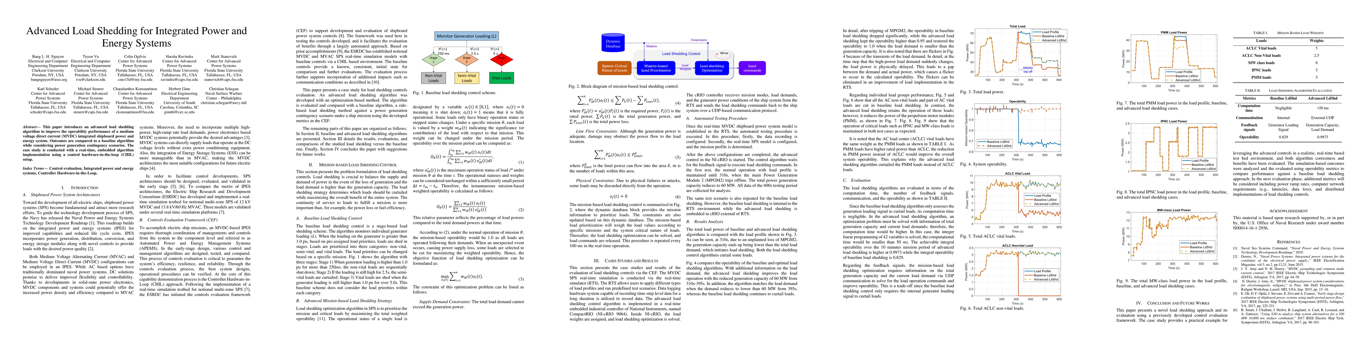 This paper introduces an advanced load shedding algorithm to improve the operability performance of a medium voltage direct current (MVDC) integrated shipboard power and energy system. Outcomes are compared to a baseline algorithm while considering power generation contingency scenarios. The case study is conducted with a real-time, embedded algorithm implementation using a control hardware-in-the-loop (CHIL) setup.