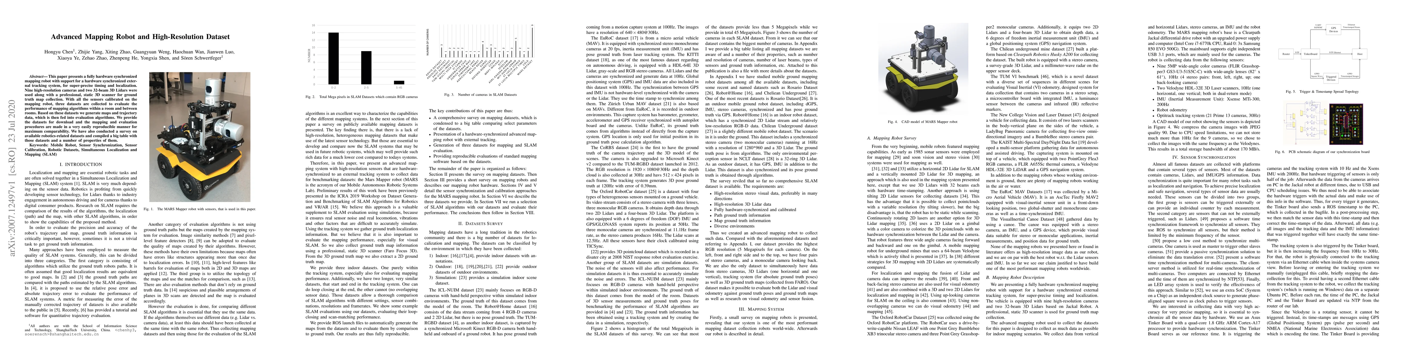 A mapping robot with nine high-resolution cameras and two 3D Lidars collects detailed maps of a room and between rooms, providing a high-resolution dataset for evaluating mapping algorithms.